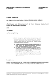 "content": "LANDTAG MECKLENBURG-VORPOMMERN Drucksache 6/3593 6. Wahlperiode 06.03.2015 KLEINE ANFRAGE der Abgeordneten Jutta Gerkan, Fraktion BÜNDNIS 90/DIE GRÜNEN „Tierhaltungs- und Betreuungsverbot“ für Herrn Adrianus Straathof und Fragen der gewerblichen Tierhaltung und ANTWORT der Landesregierung 1. Welche Konsequenzen ergeben sich aus dem „Tierhaltungs- und Betreuungsverbot“, das nach Medienberichten vom Landkreis Jerichower Land (Sachsen-Anhalt) für Herrn Adrianus Straathof per- sönlich ausgestellt wurde, für die Betriebe der Straathof-Holding GmbH in Mecklenburg-Vorpommern? a) Wann und wie soll das bundesweit geltende Tierhaltungsverbot für Herrn Straathof in Mecklenburg-Vorpommern durchgesetzt werden und welche Vorkehrungen treffen die Behörden? b) Wie soll die Versorgung der Tiere in den Anlagen der Straathof- Holding GmbH gewährleistet werden, sobald Herr Straathof nicht mehr selbstverantwortlich sein darf, wird es eine kommissarische Leitung geben und wer entscheidet darüber? c) Welche Behörde agiert in Mecklenburg-Vorpommern zu den Fragen, die sich aus den Entwicklungen zur Straathof-Holding GmbH in Sachsen-Anhalt auch für Mecklenburg-Vorpommern ergeben, federführend? Zu 1, a), b) und c) Es wird auf die Beantwortung der Fragen 1 und 4 der Kleinen Anfrage der Abgeordneten Jeannine Rösler und Prof. Dr. Fritz Tack auf Landtagsdrucksache 6/3574 verwiesen. Der Minister für Landwirtschaft, Umwelt und Verbraucherschutz hat namens der Landesregierung die Kleine Anfrage mit Schreiben vom 5. März 2015 beantwortet.",