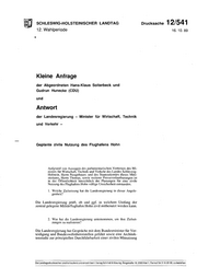 "content": "SCHLESWIG-HOLSTEINISCHER LANDTAG Drucksache 12/541 12. Wahlperiode 16.10.89 • Kleine Anfrage der Abgeordneten Hans-Klaus Solterbeck und Gudrun Hunecke (CDU) und Antwort der Landesregierung - Minister für Wirtschaft, Technik und Verkehr - Geplante zivile Nutzung des Flughafens Hohn Aufgrund von Aussagen des parlamentarischen Vertreters des Mi- nisters für Wirtschaft. Technik und Verkehr des Landes Schleswig- Holstein, Herm Neugebauer, und des Staatssekretärs dieses Mini- sterium~: Herrn Thomas, sowie weiterer Presseverlautbarungen ist in der Offentliehkeil hinsichtlich der Planungen für eine zivile Nutzung des Flughafens Hohn völlige Unsicherheit entstanden. I. Welche Zielsetzung hat die Landesregierung in dieser Angele- genheit? Die Landesregierung prüft, ob und ggf. in welchem Umfang der zentral gelegene Militärflughafen Hohn zivil mitbenutzt werden kann. 2. Was hat die Landesregierung unternommen, um ihre Zielset- zungen zu realisieren? Die Landesregierung hat Gespräche mit dem Bundesminister für Ver- teidigung und Bundeswehrdienststellen geführt sowie eine Architek- tenstudie zur prinzipiellen Durchführbarkeit einer zivilen Mitnutzung Die Landtagsdrucksachen sind fortlaufend und einzeln beim Verlag Schmidt & Klaunig, Ringstraße 19, 2300 Kiel1, Fernruf 04 31/6 20 95, zu beziehen.",