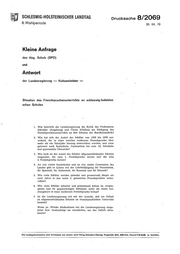 "content": "SCHLESWIG-HOLSTEINISCHER LANDTAG Drucksache 8/2069 8. Wahlperiode 30. 04. 79 Kleine Anfrage des Abg. Schulz (SPD) und Antwort der Landesregierung - Kultusminister - Situation des Fremdsprachenunterrichts an schleswig-holsteini- schen Schulen 1. Wie beurteilt die Landesregierung die Kritik der Professoren Sehröder (Augsburg) und Christ (Gießen) am. Rückgang des Fremdsprachenunterrichts an den Sd1ulen der Bundesrepublik? 2. Wie hat sidl der Anteil der Schüler von 1970 bis 1978 ent~ wickelt, die in einer zweiten modernen Fremdsprache über mehr als ein Schuljahr hinweg unterrid1tet wurden, und zwar getrennt nach Realschule, Gymnasium bis zum 10. Sdmljahr und gymnasiale Oberstufe? ' 3. Wie hoch ist der Anteil der Schüler allgemeinbildender Schulen insgesamt, die eine 1. Fremdsprache lernen und die eine 2. Fremdsprad1e lern·en? 4. An wie vielen Realsdmlen und an wie vielen Gymnasien des Landes gibt es Lehrer mit der Lehrbefähigung für Französisch, für Spanisd1, für Italienisch, für Russisch und für Dänisch'? 5. Wie viele Schüler werden (absolut und prozentual) länger als zwei Jahre in den unter 4. genannten Fremdsprachen unter- richtet? 6. Wie viele Schüler (absolut und prozentual) haben im vergan- geneu und im gegenwärtigen Schuljahr mehr als einen Lei- stungskurs in einer modernen Fremdsprad1e belegt? 7. Ist die Landesregierung mit mir der Ansidlt, daß ein Defizit an allgemeinbildenden ·Schulen im fremdsprachlichen Unterridlt besteht? Wenn ja: Weldle Maßnahmen hat die Landesregierung einge- leitet bzw. beabsidltigt sie einzuleiten, um das Defizit abzu- bauen? Oie Landtagsdrucksechen elnd fortlaufend und einzeln beim Verlag Schmldt & Klaunlg, Ringstraße 19/21,2300 Klei, Fernruf 6 20 95/96, zu beziehen.",