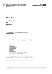 "content": "SCHLESWIG-HOLSTEINISCHER LANDTAG Drucksache 9/1097 9. Wahlperiode 02. 07. 81 Kleine Anfrage des Abg. Möbusz (SPD) und Antwort der Landesregierung - Sozialminister - Personalsituation im öffentlichen Gesundheitsdienst (Gesundheitsämter) Welche Stellen und Gesundheitsämter der Kreise und kreisfreien Städte waren zum 1. 1. 1980 und 1. 1. 1981 besetzt bzw. nidlt be- setzt? Nach Berufen: Arzte Arzthelferinnen Gesundheits~ngenieure Gesundheitsaufseher Sozialarbeiter Laboranten Ernährungsberater · und weitere Berufe des öffentlichen Gesundheits- dienstes außer reinen Verwaltungsstellen. Die in den Gesundheitsämtern der Kreise und kreisfreien Städte am 1. 1. 1980 und am 1. 1. 1981 besetzten und nicht besetzten Stellen (ohne Verwaltungspersonal) sind der als Anlage beigefügten Uber- sicht zu entnehmen. Stellen für Laboranten und Ernährungsberater sind in den Stellenplänen der Kreise und kreisfreien Städte nicht aus- gewiesen. Die Landtagsdrucksachen sind fortlaufend und einzeln beim Verlag Schmldt & Klaunlg, Ringstraße 19, 2300 Klei, Fernruf 6 20 95196, zu beziehen.·",