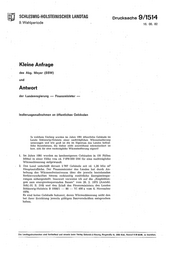 "content": "SCHLESWIG-HOLSTEINISCHER LANDTAG Drucksache 9/1514 9. Wahlperiode 16. 06. 82 Kleine Anfrage des Abg. Meyer (SSW) und Antwort der Landesregierung - Finanzminister - Isolierungsmaßnahmen an öffentlichen Gebäuden In welchem Umfang wurden im Jahre 1981 öffentliche Gebäude im Lande Schleswig-Holstein einer nachträglichen Wärmeisolierung unterzogen und wie groß ist die im Eigentum des Landes befind- liche Bausubstanz, die bisher nicht ausreichend wärmeisoliert ist bzw. sich für eine nachträgliche Wärmeisolierung eignet? 1. Im Jahre 1981 wurden an landeseigenen Gebäuden in 191 Fällen Mittel in einer Höhe von rd. 7 978 000 DM für eine nachträglidw VVännedämmung aufgewandt. 2. Das Land -unterhält derzeit 2 787 Gebäude mit rd. 1,26 Mio m 2 Hauptnutzfläche. Der Finanzminister des Landes hat durch An- hebung des Wärmeschutzniveaus über die jeweils bestehenden Red1tsvorschriften hinaus redüzeitig zusätzliche Energieeinspa~ rungen sichergestellt. Insoweit verweise id1 auf die \"Empfehlun~ gen zum energieeinsparenden Bauen\" vom 26. 2. 1975 (Amtsbl. Schl.-H. S. 510) und den Erlaß des Finanzministers des Landes Schleswig-Holstein B 1000/1 - 80 - VI 400 a vom 6. November 1979. Es sind keine Gebäude bekannt, deren Wärmedämmung nicht den bei.ihrer Errichtung jeweils gültigen Bauvorschriften entsprochen haben. Die Landtagsdrucksachen sind fortlaufend und einzeln beim Verlag Schmldt & Klaunlg, Ringstraße 1g, 2300 Klei, Fernruf 6 20 95196, zu beziehen.",