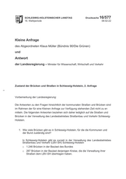 "title": "Zustand der Brücken und Straßen in Schleswig-Holstein, 2. Anfrage",