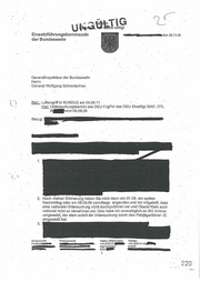 "content": ".u~.W~nnotJg. ~- ~un1\"\\q Ein~atzführungskomf!Iando der Bundeswehr ,..~ ..--•••den 25.~1.09 . . G.eneraÜnspekteur der Bunde.swehr Herrn . General W~lfgang Schneiderhan ' ( :.} Betr.: Luftangriffjn KUNDUZ am 04.09.11 ·· hier:· Unter:s~chungsbericht des DEU FJgFhr des DEU EinsKtgt ISAF; OTL 8 - v o m 09.09.~9 ! l 'l -· '. 2. Nach meiner E'rinnerulig haben.Sie mic;:h dann am 07.09. am späten . Nachmittag oderam OS.09.09 vormittags angerufen .ulid mir mitgeteilt, da~s eine. nationale Ünfersuchun.g nicht durchzuführen sei und Oberst Klein au,ch · national nicht zu vernehmen sei; Dies habe ich unverzbglich·an BG Vol!mer umgesetzt, der dann sofort die Untersuchung durch den Feldjägerführer i.E. · · · ei.ng~stellt hat. · · 3: E'ostanschrift: Paketansctuift: Telefon (öffen!I.Netz) Telefax: . .. . · Postfach~ ;: . I +49 (0)33 27_ _... +49 (0)33 27-50..- 4' . h, 2!8 d I '3 AllgFsQWNBw . E-Mail: . W@fHIIP4 t•s !3 Gei!IIISI :: 8500-- 1",