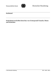 "content": "Wissenschaftliche Dienste Sachstand Seite 2 WD 5 - 3000 - 100/19 Sicherheitsvorschriften beim Bau von (Untergrund)-Tunneln, Minen und Schächten Aktenzeichen: WD 5 - 3000 - 100/19 Abschluss der Arbeit: 23. Oktober 2019 Fachbereich: WD 5: Wirtschaft und Verkehr, Ernährung, Landwirtschaft und Verbraucherschutz Die Wissenschaftlichen Dienste des Deutschen Bundestages unterstützen die Mitglieder des Deutschen Bundestages bei ihrer mandatsbezogenen Tätigkeit. Ihre Arbeiten geben nicht die Auffassung des Deutschen Bundestages, eines sei- ner Organe oder der Bundestagsverwaltung wieder. Vielmehr liegen sie in der fachlichen Verantwortung der Verfasse- rinnen und Verfasser sowie der Fachbereichsleitung. Arbeiten der Wissenschaftlichen Dienste geben nur den zum Zeit- punkt der Erstellung des Textes aktuellen Stand wieder und stellen eine individuelle Auftragsarbeit für einen Abge- ordneten des Bundestages dar. Die Arbeiten können der Geheimschutzordnung des Bundestages unterliegende, ge- schützte oder andere nicht zur Veröffentlichung geeignete Informationen enthalten. Eine beabsichtigte Weitergabe oder Veröffentlichung ist vorab dem jeweiligen Fachbereich anzuzeigen und nur mit Angabe der Quelle zulässig. Der Fach- bereich berät über die dabei zu berücksichtigenden Fragen.",