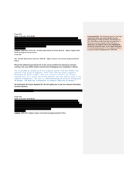 "content": "From: FSC\nSent: 16 October 2015 09:04\n\n \n\nSubject: 5968/2015 Initial SIR - Flexible Operational Activities 2015 SE - Afghan migrant shot\ndead by Bulgarian Border Police\nInitial SIR\n\nSIR - Flexible Operational Activities 2015 SE - Afghan migrant shot dead by Bulgarian Border\nPolice\n\nPlease find additional operational info on the serious incident that took place yesterday\nevening in the area of BCU Sredets received from the Bulgarian LCC Coordinator in Elhovo.\n\n“On 15.18.2815 at around 21.45 hrs a police patrol from BCU Sredets has\nspotted a big group of migrants. After have seen the police migrants\ndisobeyed the police orders. Then one of police officers was firing a\nwarning shot. As a result one of the migrants was shot and has died in the\nvehicle of Ambulance. The case is under monitoring of District Prosecution\nof Burgas. The body was transported to forensic Medicine in Burgas.”\n\nNo involvement of Frontex deployed GO. We will update you in case new relevant information\nhas been obtained.\n\n \n\nSent: 16 October 2015 08:46\n\n \n\nSubject: 5968/2015 Afghan migrant shot dead by Bulgarian Border Police\n\n \n\nCommented [A1]: The blanked out parts on this page\ncontain the names and contact details of actors\nparticipating in Frontex activities. The disclosure of\nsuch information would undermine the protection of\nthe privacy and the integrity of the individuals, in\nparticular in accordance with EU laws regarding the\nprotection of personal data. In this regard those parts\nare not disclosed pursuant to the exception laid down\nin Article 4(1)(b) of Regulation (EC) 1049/2001.",