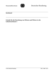 "title": "WD 4 - 017/17 Gründe für die Einreihung von Witwen und Witwer in die Lohnsteuerklasse I",