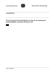 "title": "WD 10 - 150/10 Weist die geplante Haushaltsabgabe im Zuge der Neuregelung der Rundfunkgebühr steuerliche Merkmale auf?",
