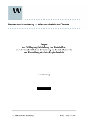 "content": "Fragen zur Stilllegung/Schließung von Bahnhöfen, zur durchschnittlichen Entfernung zu Bahnhöfen sowie zur Einstellung des InterRegio-Betriebs - Ausarbeitung - © 2008 Deutscher Bundestag WD 5 - 3000 - 112/08",