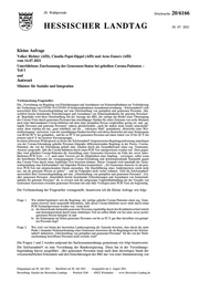 "content": "20. Wahlperiode Drucksache 20/6166 HESSISCHER LANDTAG 30. 07. 2021 Kleine Anfrage Volker Richter (AfD), Claudia Papst-Dippel (AfD) und Arno Enners (AfD) vom 14.07.2021 Unterbliebene Zuerkennung des Genesenen-Status bei geheilten Corona-Patienten – Teil I und Antwort Minister für Soziales und Integration Vorbemerkung Fragesteller: Die „Verordnung zur Regelung von Erleichterungen und Ausnahmen von Schutzmaßnahmen zur Verhinderung der Verbreitung von COVID-19 (COVID-19-Schutzmaßnahmen-Ausnahmenverordnung – SchAusnahmV) zielt ausweislich ihrer Gesetzesbegründung auf eine Gleichstellung von geimpften und genesenen Personen „hin- sichtlich bereits bestehender Erleichterungen und Ausnahmen von Schutzmaßnahmen für getestete Personen“ ab. Begründet wird diese Gleichstellung mit der Aussage des RKI, der zufolge das Risiko einer Übertragung des Corona-Virus durch genesenen Personen laut einschlägiger Studien für einen Zeitraum von sechs Monaten nach einer überstandenen Corona-Infektion mit dem einer geimpften Person vergleichbar gering sei, und „ge- impfte Personen und genesene Personen“ nahezu gleichermaßen „auch für andere nicht (mehr) ansteckend“ seien; diese würden ein nur „ganz erheblich, auf ein … toleriertes Maß“ gemindertes „Restrisiko einer Wei- terübertragung“ aufweisen. Laut der einschlägigen Studien beziffert sich dieses Restrisiko mit einer Schutzquote von 80 bis 90 % bei geimpften-, und bis zu 92 % bei genesenen Personen auf einen Anteil von 10 bis 20 % bei ersterer und 8 % bei letzterer Personengruppe. In einem teilweisen Widerspruch zu dieser der SchAusnahmV beigemessenen Regelungszielsetzung unterliegen von der Corona-Erkrankung geheilte Personen folgender differenzierenden Regelung in der Praxis: Corona- Patienten, die von der Erkrankung geheilt sind, erhalten durch das Gesundheitsamt einen sog. Genesenen- Ausweis ausgestellt, falls die Corona-Infektion durch einen PCR-Test nachgewiesen worden war. Dem gegen- über wird geheilten Corona-Patienten die Ausstellung eines Genesenen-Ausweises im Falle des zuvor unter- bliebenen PCR-Tests – z.T. auch unter Verweis auf die Möglichkeit einer Impfung - verweigert, selbst wenn die betroffenen Personen die vorausgegangene Corona-Erkrankung und dementsprechende Immunität gegen den Corona-Virus durch einen Antikörper-Test beweisen können. Dieser Umstand wird innerhalb der Geset- zesbegründung zum SchAusnahmV mit folgenden Worten kommentiert: „Als Genesenen-Ausweis ist ein posi- tiver PCR-Test mit entsprechendem Datum anzusehen. Die Durchführung eines Antikörpertests reicht nicht aus, um als genesene Person zu gelten“ – und im Folgenden nicht weiter erläutert. Zielt die SchAusnahmV ausweislich ihrer Gesetzesbegründung auf eine „Gleichstellung von geimpften und genesenen Personen“, d.h. aller genesenen Personen „hinsichtlich bereits bestehender Erleichterungen und Ausnahmen von Schutzmaß- nahmen für getestete Personen“ ab, so erweist sich die aufgezeigte Ungleichbehandlung bei der Vergabe von Genesenen-Ausweisen zwischen genesenen Personen mit und ohne Vorliegen eines PCR-Tests als fragwürdig. Die Vorbemerkung der Fragesteller vorangestellt, beantworte ich die Kleine Anfrage wie folgt: Frage 1. Wie erklärt/legitimiert sich die Regelung, der zufolge geheilte Corona-Patienten einen sog. Gene- senen-Ausweis nicht ausgestellt bekommen, falls deren Corona-Infektion zuvor nicht durch einen PCR-Testnachgewiesen worden war, wenn doch a) die hinreichende Immunität genesener Personen regelmäßig durch den Krankheitsverlauf eintritt und dementsprechend durch einen Antikörper-Test im selben Maße wie bei einer zuvor positiv getesteten Person belegbar ist und b) die Schutzquote auf Seiten genesener Personen von bis zu 92 % gar über derselben von geimpf- ten Personen liegt? Frage 2. Wie wird von Seiten der hessischen Landesregierung die Tatsache bewertet, dass durch die unter Punkt 1 benannte Nichtzuerkennung eines Genesenen-Ausweises die als Regelungsziel der SchAus- nahmV deklarierte „Gleichstellung von geimpften und genesenen Personen“ für die von der Nicht- zuerkennung betroffenen Personen nicht erreicht wird? Die Fragen 1 und 2 werden aufgrund des Sachzusammenhangs gemeinsam wie folgt beantwortet: Die SchAusnahmV ist eine Verordnung der Bundesregierung. Diese hat in der Verordnungs- begründung hierzu ausgeführt: „Bei genesenen Personen kann nach dem derzeitigen Stand der wissenschaftlichen Erkenntnis und den Einschätzungen des RKI nur von einer Immunisierung von Eingegangen am 30. Juli 2021 · Bearbeitet am 30. Juli 2021 · Ausgegeben am 4. August 2021 Herstellung: Kanzlei des Hessischen Landtags · Postfach 3240 · 65022 Wiesbaden · www.Hessischer-Landtag.de",