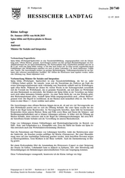 "content": "20. Wahlperiode Drucksache 20/740 HESSISCHER LANDTAG 12. 07. 2019 Kleine Anfrage Dr. Sommer (SPD) vom 04.06.2019 Spina bifida und Hydrocephalus in Hessen und Antwort Minister für Soziales und Integration Vorbemerkung Fragestellerin: Spina bifida (Wirbelspalt/Spaltwirbel) ist eine Neuralrohrfehlbildung, umgangssprachlich wird die Erkran- kung auch \"offener Rücken\" genannt. Auswirkungen reichen von eher geringen Beeinträchtigungen wie Sen- sibilitätsstörungen bis zur Querschnittslähmung. Der Hydrocephalus kann vorgeburtlich entstehen und tritt zu 80 % auf, wenn eine Spina bifida vorliegt. er tritt aber auch isoliert auf. Er kann sowohl vorgeburtlich durch Fehlbildungen oder Hirnblutungen entstehen wie auch in jedem Lebensalter z.B. durch Infektionen, Unfälle oder Tumore. Die Auswirkungen reichen von geringer Beeinträchtigung, Teilleistungsschwächen bis zur Epi- lepsie oder schweren neurologischen Ausfällen. Der Abfluss des Hirnwassers kann reguliert werden, indem eine Ableitung (sog. Shunt) implantiert wird. Vorbemerkung Minister für Soziales und Integration: Spina bifida (Wirbelspalt, Spaltwirbel) ist eine Neuralrohrfehlbildung, die bei ca. jeder 1.000sten Geburt auftritt. Sie entsteht, wenn sich die Neuralrinne des Embryos am Ende des ersten Schwangerschaftsmonats nicht vollständig zum Neuralrohr schließt und ein Wirbelbogen- spalt offen bleibt. Während der dritten bis vierten Woche in der Schwangerschaft verschließt sich die Vorstufe des Wirbelkanals, das so genannte Neuralrohr, um sich dann zur Wirbelsäule mit dem Rückenmark zu entwickeln. Bei Kindern mit Spina bifida ist der Verschluss aus bisher noch nicht näher bekannten Gründen gestört. An einer Stelle bleibt der von den Wirbeln gebil- dete Rückenmarkskanal offen, weshalb Spina bifida umgangssprachlich auch „offener Rücken“ genannt wird. Der Begriff ist irreführend, da der Rücken nicht tatsächlich offen ist. Die Nerven treten in einer Blase (= Zyste) sichtbar nach außen. Die Auswirkungen eines offenen Rückens hängen davon ab, ob und wie viel Nervengewebe aus dem Wirbelkanal austritt und wo sich die Öffnung befindet. Bei einer Spina occulta hat das Kind in der Regel keine Beschwerden. Ist Nervengewebe betroffen, dann fehlt bei bestimmten Körperteilen (beim unteren Rücken: Beine und Füße sowie Blase und Darm) die Schmerz- und Berührungsempfindlichkeit und es können Lähmungen auftreten. Je höher sich die Öffnung am Rücken befindet, desto schwerer sind in der Regel die Lähmungserscheinungen. Bei etwa 80% der betroffenen Kinder befindet sich die Vorwölbung im unteren Rückenbereich. Folge von Lähmungen können Fehlstellungen und Muskelungleichgewichte im Bereich von Hüft-, Knie- und Fußgelenken (u.a. Klumpfüße) sein. Etwa die Hälfte der Kinder mit Spina bi- fida entwickeln auch eine Wirbelsäulenverkrümmung (Skoliose). Sind die Patientinnen und Patienten von Lähmungen betroffen, leidet das Skelettsystem unter der Inaktivität, die Knochen werden anfälliger für Brüche (Osteoporose). Bei einer Blasenläh- mung muss auf eine regelmäßige Entleerung geachtet werden, denn betroffene Personen neigen zu Harnwegsinfekten, wenn Restharn in der Blase verbleibt. Auch die Darmentleerung ist häu- fig gestört. Bei einem Hydrozephalus führt die Ansammlung des Hirnwassers (Liquor) zu einer Steigerung des Drucks im Gehirn. Unbehandelt kann es dadurch zu Epilepsie, Seh- oder Hörstörung und Hirnschädigungen mit Behinderungen unterschiedlichster Form und Ausprägung kommen. Diese Vorbemerkungen vorangestellt, beantworte ich die Kleine Anfrage wie folgt: Eingegangen am 12. Juli 2019 · Bearbeitet am 12. Juli 2019 · Ausgegeben am 16. Juli 2019 Herstellung: Kanzlei des Hessischen Landtags · Postfach 3240 · 65022 Wiesbaden · www.Hessischer-Landtag.de",