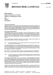 "content": "20. Wahlperiode Drucksache 20/1483 HESSISCHER LANDTAG 15. 01. 2020 Kleine Anfrage Manuela Strube (SPD) vom 31.10.2019 Pilotphase der Familienklassen in Hessen und Antwort Kultusminister Vorbemerkung Fragestellerin: Im Schuljahr 2019/20 wird an ausgewählten Grundschulen das Modell der Familienklassen im Rahmen einer Pilotphase eingeführt und erprobt. Hierbei besuchen ausgewählte Schülerinnen und Schüler gemeinsam mit mindestens einer oder einem Erziehungsberechtigten an einem Tag in der Woche eine spezielle Klasse. Dort werden sie von einer Lehrkraft, Förderlehrkraft oder UBUS-Kraft sowie von einer Multifamilientrainerin oder einem Multifamilientrainer begleitet. Staatssekretär Dr. Manuel Lösel kündigt dazu in einem Video vom 18.01.2019 an, dieses Modell zukünftig „in die Fläche zu bringen“. Vorbemerkung Kultusminister: Familienklassen sind ein in der Praxis erprobtes, präventives Förderinstrument zur Verbesse- rung der schulischen und familiären Problemfelder von Grundschulkindern und ihren Familien. Die Schülerinnen und Schüler sowie ihre Familien, die sich in einer herausfordernden Situation befinden, erfahren oft vielfältige Hilfe durch Schule und Jugendhilfe. Das Konzept der Fami- lienklasse führt schulische Maßnahmen und solche der Jugendhilfe vor Ort in der Schule zu- sammen. Diese Vorbemerkungen vorangestellt, beantworte ich die Kleine Anfrage im Einvernehmen mit dem Hessischen Minister für Soziales und Integration wie folgt: Frage 1. Wie viele Familienklassen gibt es im Schuljahr 2019/2020 in Hessen? (Bitte getrennt nach Schul- amtsbezirken sowie Schulen auflisten.) Im Schuljahr 2019/2020 gibt es im Rahmen des Pilotprojektes „Familienklassen in Hessen“ ins- gesamt 22 Familienklassen, davon bei den einzelnen Pilotschulträgern eine im Kreis Bergstraße, zwei in der Stadt Gießen, eine im Landkreis Kassel, 13 im Lahn-Dill-Kreis (sechs Einzelstand- orte, sieben Verbundstandorte mit insgesamt 34 Grundschulen des Lahn-Dill-Kreises), zwei im Main-Kinzig-Kreis und drei im Wetteraukreis. Die einzelnen z.T. sehr kleinen Schulen werden aus Datenschutzgründen nicht namentlich ge- nannt, um eine Identifizierbarkeit der teilnehmenden Schülerinnen und Schüler zu verhindern. Frage 2. Wie viele Kinder und wie viele zugehörige Erziehungsberechtigte nehmen im Schuljahr 2019/20 in Hessen an Familienklassen teil? (Bitte getrennt nach Schulamtsbezirken sowie nach Schulen und Jahrgangsstufen aufgliedern.) Das Konzept der Familienklasse sieht vor, dass sechs bis acht Grundschulkinder und jeweils eine Erziehungsberechtigte oder ein Erziehungsberechtigter einmal wöchentlich fünf Schulstun- den an einem festgelegten Schulvormittag gemeinsam verbringen. Falls für die Eltern nicht die Möglichkeit einer Teilnahme besteht, können mit ihrer Zustimmung ein Großelternteil oder eine andere Bezugsperson, die der Familie des Kindes angehört, an der Familienklasse teilnehmen. Der Besuch der Familienklasse ist auf drei bis sechs Monate angelegt und endet, wenn die Ent- wicklung des Kindes im Unterricht dies zulässt. Angaben zu der Anzahl der Kinder und Erziehungsberechtigten an einzelnen Schulen und in einzelnen Jahrgangsstufen können nicht gemacht werden, da sie über das Jahr stark variiert. Selbst wenn dies anders wäre, bestünden wiederum datenschutzrechtliche Bedenken gegen die Eingegangen am 15. Januar 2020 · Bearbeitet am 15. Januar 2020 · Ausgegeben am 17. Januar 2020 Herstellung: Kanzlei des Hessischen Landtags · Postfach 3240 · 65022 Wiesbaden · www.Hessischer-Landtag.de",