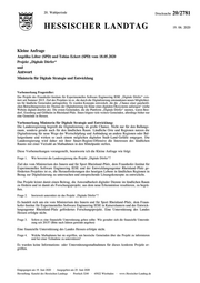 "content": "20. Wahlperiode Drucksache 20/2781 HESSISCHER LANDTAG 19. 06. 2020 Kleine Anfrage Angelika Löber (SPD) und Tobias Eckert (SPD) vom 18.05.2020 Projekt „Digitale Dörfer“ und Antwort Ministerin für Digitale Strategie und Entwicklung Vorbemerkung Fragesteller: Das Projekt des Fraunhofer-Instituts für Experimentelles Software Engineering IESE „Digitale Dörfer“ exis- tiert seit Sommer 2015. Ziel des Projektes ist es, die durch die Digitalisierung entstandenen neuen Möglichkei- ten für ländliche Gemeinden aufzugreifen. Es wurden Konzepte entwickelt, die die „Chance einer ganzheitli- chen Betrachtungsweise des Themas der Digitalisierung im Sinne eines digitalen Ökosystems aufzeigen“ (siehe Website digitale-doerfer.de). Die ersten Gemeinden, die die Plattform „Digitale Dörfer“ nutzten, waren Betz- dorf, Eisenberg und Göllheim in Rheinland-Pfalz. Ihnen folgten viele weitere Gemeinden, allerdings bisher nur eine Gemeinde in Hessen. Vorbemerkung Ministerin für Digitale Strategie und Entwicklung: Die Landesregierung begreift die Digitalisierung als große Chance. Nicht nur für den Ballungs- raum, sondern gerade auch für den ländlichen Raum. Ländliche Orte und Regionen nutzen die Digitalisierung für neue Wege der Wertschöpfung und Anbindung an andere Regionen oder Bal- lungsräume und wirken so auch einem möglichen digitalen Stadt-Land-Gefälle entgegen. Die Landesregierung wird daher mit ihrer Smart-Region-Offensive die Interessen des ländlichen Raums mit einer Vielzahl an Maßnahmen in den Mittelpunkt stellen. Diese Vorbemerkungen vorangestellt, beantworte ich die Kleine Anfrage wie folgt: Frage 1. Wie bewertet die Landesregierung das Projekt „Digitale Dörfer“? Ziel des vom Ministerium des Innern und für Sport Rheinland-Pfalz, dem Fraunhofer-Institut für Experimentelles Software Engineering IESE und der Entwicklungsagentur Rheinland-Pfalz ge- förderten Projektes ist es, die Herausforderungen des heutigen Lebens in ländlichen Regionen in Bezug zur Digitalisierung zu untersuchen und entsprechende Lösungskonzepte zu entwickeln. Das Projekt leistet damit einen Beitrag, die Anwendbarkeit digitaler Dienste im ländlichen Raum zu fördern und ist damit als Forschungsprojekt, aus dem neue Erkenntnisse resultieren, zu begrü- ßen. Frage 2. Inwieweit unterstützt sie das Projekt „Digitale Dörfer“? Es handelt sich um ein vom Ministerium des Innern und für Sport Rheinland-Pfalz, dem Fraun- hofer-Institut für Experimentelles Software Engineering IESE in Kaiserslautern und der Entwick- lungsagentur Rheinland-Pfalz gefördertes Forschungsprojekt. Eine Unterstützung des Landes Hessen erfolgte nicht. Frage 3. Sofern es eine finanzielle Unterstützung geben sollte: Wie gestaltet sich die finanzielle Unterstüt- zung seit 2015? (Bitte nach Jahren getrennt angeben) Eine finanzielle Unterstützung des Landes Hessen erfolgte nicht. Frage 4. Welche Maßnahmen hat sie ergriffen, um hessische Gemeinden über das Projekt zu informieren und bei einer Teilnahme zu unterstützen? Es wurden keine Informations- oder Unterstützungsmaßnahmen für dieses konkrete Projekt er- griffen. Eingegangen am 19. Juni 2020 · Ausgegeben am 25. Juni 2020 Herstellung: Kanzlei des Hessischen Landtags · Postfach 3240 · 65022 Wiesbaden · www.Hessischer-Landtag.de",