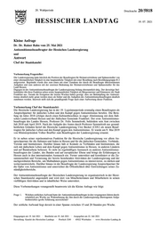 "content": "20. Wahlperiode Drucksache 20/5818 HESSISCHER LANDTAG 19. 07. 2021 Kleine Anfrage Dr. Dr. Rainer Rahn vom 25. Mai 2021 Antisemitismusbeauftragter der Hessischen Landesregierung und Antwort Chef der Staatskanzlei Vorbemerkung Fragesteller: Die Landesregierung hatte kürzlich die Position der Beauftragten für Heimatvertriebene und Spätaussiedler von einer ehrenamtlichen Tätigkeit in eine hauptamtliche Tätigkeit mit einer Bezahlung nach Besoldungsgruppe B 2 aufgewertet. Begründet wurde dies zum einen mit einer Zunahme der durch die Beauftragte übernommenen Aufgaben und zum anderen mit der enormen Bedeutung der Heimatvertriebenen und Spätaussiedler für das Land Hessen. Dagegen ist der Antisemitismusbeauftragte der Landesregierung bislang ehrenamtlich tätig. Der derzeitige Stel- leninhaber übt diese Funktion neben seiner hauptamtlichen Tätigkeit als Bürgermeister und Kämmerer der Stadt Frankfurt aus. Gerade die Ereignisse der letzten Wochen haben gezeigt, dass zur Bekämpfung des Antisemi- tismus deutlich mehr getan werden muss als bisher und die Aufgaben des Antisemitismusbeauftragten deutlich zunehmen werden. Insoweit stellt sich die grundlegende Frage nach einer Aufwertung dieser Funktion. Vorbemerkung Chef der Staatskanzlei: Die Hessische Landesregierung hat in der 19. Legislaturperiode erstmalig einen Beauftragten als Ansprechpartner für jüdisches Leben und den Kampf gegen Antisemitismus berufen. Die Beru- fung im Jahre 2018 erfolgte durch einen Kabinettbeschluss in enger Abstimmung mit dem Jüdi- schen Landesverband Hessen und der Jüdischen Gemeinde Frankfurt. Der erste Antisemitismus- beauftragte des Landes Hessen, Professor Dr. Felix Semmelroth, bekleidete sein Amt zwischen Juli 2018 und April 2019. Nach der Aufgabe des Amtes durch Professor Semmelroth aus gesund- heitlichen Gründen berief die Hessische Landesregierung Uwe Becker (CDU) als neuen Beauf- tragten für jüdisches Leben und den Kampf gegen den Antisemitismus. Er wurde am 9. Mai 2019 von Ministerpräsident Volker Bouffier zum Beauftragten der Landesregierung ernannt. Er ist neben seiner repräsentativen Funktion für die Hessische Landesregierung vor allem An- sprechpartner für die Jüdinnen und Juden in Hessen und für die jüdischen Gemeinden, Verbände, Vereine und Institutionen. Darüber hinaus hält er Kontakt zu Verbänden und Institutionen, die sich mit jüdischem Leben und dem Kampf gegen Antisemitismus in Hessen, in anderen Ländern und auf Bundesebene befassen. Er steht im regelmäßigen Austausch zu anderen Antisemitismus- beauftragten der Länder, des Bundes und auf europäischer Ebene und bringt die Erfahrungen in Hessen auch in den internationalen Austausch ein. Ferner unterstützt und koordiniert er die Zu- sammenarbeit und Vernetzung der bereits bestehenden Aktivitäten der Landesregierung und der nachgeordneten Bereiche, um Maßnahmen gegen Antisemitismus zu intensivieren, zu stärken und weiterzuentwickeln. Darüber hinaus ist der Beauftragte der Landesregierung Ansprechpartner für die Opfer von Antisemitismus und unterrichtet die Öffentlichkeit über Entwicklungen seines Zu- ständigkeitsbereichs. Der Antisemitismusbeauftragte der Hessischen Landesregierung ist organisatorisch in der Hessi- schen Staatskanzlei angesiedelt und wird dort von Mitarbeiterinnen und Mitarbeitern in seinen vielfältigen Aktivitäten und in inhaltlicher Weise unterstützt. Diese Vorbemerkungen vorangestellt beantworte ich die Kleine Anfrage wie folgt: Frage 1. Welchen zeitlichen Aufwand hatte der Antisemitismusbeauftragte in den vergangenen Jahren durch- schnittlich pro Woche zur Wahrnehmung der ihm durch die Landesregierung übertragenen Aufga- benbetrieben (grobe Schätzung ausreichend)? Der zeitliche Aufwand liegt derzeit in einer Spanne zwischen 15 und 20 Stunden pro Woche. Eingegangen am 19. Juli 2021 · Bearbeitet am 19. Juli 2021 · Ausgegeben am 22. Juli 2021 Herstellung: Kanzlei des Hessischen Landtags · Postfach 3240 · 65022 Wiesbaden · www.Hessischer-Landtag.de",