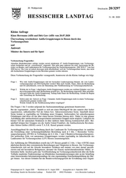 "content": "20. Wahlperiode Drucksache 20/3297 HESSISCHER LANDTAG 31. 08. 2020 Kleine Anfrage Klaus Herrmann (AfD) und Dirk Gaw (AfD) vom 28.07.2020 Überwachung verschiedener Antifa-Gruppierungen in Hessen durch den Verfassungsschutz und Antwort Minister des Innern und für Sport Vorbemerkung Fragesteller: Aktuellen Medienberichten zufolge werden zurzeit mindestens 47 Antifa-Gruppierungen vom Verfassungs- schutz beobachtet und als „extremistisch“ eingestuft. Dies geht unter anderem aus einer Auswertung der Be- richte von Bundes- und Landesämtern für Verfassungsschutz des Nachrichtenmagazins „DIE WELT“ vom Juni 2020 hervor. Die Liste sei jedoch deswegen nicht abschließend, weil der Verfassungsschutz betont, dass nicht alle beobachteten Gruppierungen in den Berichten genannt werden müssten. Diese Vorbemerkung der Fragesteller vorangestellt, beantworte ich die Kleine Anfrage wie folgt: Frage 1. Wie viele Antifa-Gruppierungen sind der hessischen Landesregierung bekannt, die vom Landes- verfassungsschutz seit 2010 beobachtet werden? Bitte nach Anzahl, Name, Jahre der Beobachtung und Ort aufschlüsseln, sowie der Benennung oder Nichtbenennung im Verfassungsschutzbericht. Frage 2. Welche der in Frage 1 abgefragten Antifa-Gruppierungen wurden aus welchen Gründen vom Lan- desverfassungsschutz unter Beobachtung gestellt bzw. die Beobachtung eingestellt? Bitte aufschlüs- seln nach Name der Antifa-Gruppierung, Anfang-Ende-Dauer der Beobachtung, Gründe für Beginn oder Einstellung der Beobachtung. Frage 3. Sofern unter der Antwort zu Frage 1 benannte Antifa-Gruppierungen nicht in einem Verfassungs- schutzbericht genannt worden sind: Welche Gründe für die Nichtbenennung haben vorgelegen? Die Fragen 1 bis 3 werden aufgrund des Sachzusammenhangs gemeinsam beantwortet. Bei der sogenannten „Antifa“ handelt es sich um einen Oberbegriff für den zumeist eher locker organisierten, subkulturellen Teil der linken bzw. linksextremistischen Szene. Innerhalb dieser Szene kommt es regelmäßig zur Gründung neuer Gruppen. Insbesondere bei anlassbezogenen Gründungen sind diese oft nur über einen kurzen Zeitraum hinweg aktiv. Daher ist eine genaue Aufzählung aller antifaschistisch ausgerichteten autonomen Gruppen nicht möglich. Lediglich ein kleiner Teil der autonomen Strukturen ist über mehrere Jahre hinweg kontinuierlich aktiv. Bei- spielhaft können hier Gruppen wie die Antifa United Frankfurt, die Antifaschistische Revolutio- näre Aktion Gießen (ARAG) sowie T.A.S.K. Kassel genannt werden. Ausschlaggebend für eine Beobachtung durch das Landesamt für Verfassungsschutz ist zunächst die Feststellung einer verfassungsfeindlichen Bestrebung nach § 3 Abs. 1 Hessisches Verfas- sungsschutzgesetz (HVSG) in Verbindung mit § 4 Abs. 1 und 2 Bundesverfassungsschutzgesetz. Die politischen Ziele von autonomen Gruppierungen werden regelmäßig im Jahresbericht des Landesamtes für Verfassungsschutz (LfV) Hessen zusammengefasst. Zur Aufklärung der Öffentlichkeit erstellt das LfV Hessen gemäß § 2 Abs. 1 Satz 4 HVSG einen jährlichen Bericht über extremistische Bestrebungen und Tätigkeiten in Hessen. Der Verfassungs- schutzbericht zielt auf die Abwehr besonderer Gefahren und stammt von einer darauf speziali- sierten und mit besonderen Befugnissen, darunter der Einsatz nachrichtendienstlicher Mittel, ar- beitenden Stelle. Insofern geht eine Veröffentlichung im Verfassungsschutzbericht über die bloße Teilhabe staatlicher Funktionsträger an öffentlichen Auseinandersetzungen oder an der Schaffung einer hinreichenden Informationsgrundlage für eine eigenständige Entscheidungsbildung der Bür- ger hinaus. Aus diesen Gründen hat das Bundesverfassungsgericht der Erwähnung einer Organi- Eingegangen am 31. August 2020 · Bearbeitet am 31. August 2020 · Ausgegeben am 4. September 2020 Herstellung: Kanzlei des Hessischen Landtags · Postfach 3240 · 65022 Wiesbaden · www.Hessischer-Landtag.de",