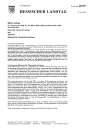 "content": "20. Wahlperiode Drucksache 20/357 HESSISCHER LANDTAG 07. 05. 2019 Kleine Anfrage Dr. Frank Grobe (AfD), Dr. Dr. Rainer Rahn (AfD) und Heiko Scholz (AfD) vom 20.03.2019 Kosten für „Gender-Forschung“ und Antwort Ministerin für Wissenschaft und Kunst Vorbemerkung Fragesteller: Seit längerem gibt es die sog. „Gender-Forschung“, die sich mit der Bedeutung des Geschlechts für Kultur, Gesellschaft und Wissenschaften beschäftigt. Vielfach handelt es sich dabei jedoch nicht um eine echte Wis- senschaft mit ergebnisoffener Forschung. So bezeichnete der Evolutionsbiologe Ulrich K. in einem Interview mit dem RBB „die Gender Studies als unwissenschaftlichen Unsinn“. Die akademischen Gender Studies seien eine „fundamentalistische feministi- sche Ideologie, die von einer kompletten sozialen Konstruiertheit des biologischen Geschlechts ausgingen.“ „Gender-Forscher“ sind an den Universitäten unterschiedlichen Fachbereichen zugeordnet und beschäftigen sich – je nach Zuordnung – teilweise mit soziologischen, kulturellen oder sprachlichen Aspekten. Zumindest im letztgenannten Bereich gibt es immerhin umfangreiche „wissenschaftliche“ Werke, die sich z.B. mit der korrekten Anrede von Trans-Personen befassen. Die Sprachforscherin Lann H. (Berlin) hat hierzu vorge- schlagen, Trans-Personen als „Liebe Trans_x_te“ anzusprechen, wobei offenbleibt, wie man eine „trans_x_te Person“ überhaupt erkennen kann, wenn sich diese als Mann oder Frau ausgibt. Vorbemerkung Ministerin für Wissenschaft und Kunst: Nach Artikel 5 Abs. 3 Satz 1 des Grundgesetzes sind Wissenschaft, Forschung und Lehre frei. Im Hessischen Hochschulgesetz (HHG) ist festgelegt, dass sowohl das Land Hessen als auch die hessischen Hochschulen die Aufgabe haben, sicherzustellen, dass diese Grundrechte von den Mitgliedern und Angehörigen der Hochschulen wahrgenommen werden können. Dies gilt selbstverständlich auch für die Gender-Forschung. Über die Einrichtung und die Denomination von Professuren entscheiden die autonomen Hochschulen im Rahmen der Wissenschaftsfreiheit selbst. Die Inhaberinnen und Inhaber von Professuren entscheiden selbstständig über die inhalt- lichen Schwerpunkte von Forschung und Lehre. Die Landesregierung hat seit dem Jahr 2001 zwei eigene Förderprogramme zur Frauen- und Geschlechterforschung an Universitäten und Hochschulen für Angewandte Wissenschaften auf- gelegt. Die Erkenntnisse dieses Forschungsbereichs hat auch die AfD-Fraktion bereits nutzen können, als sie bei einer ihrer ersten Anfragen im Januar 2019 zum Thema „Gewalt in hessi- schen Notaufnahmen und gegen Rettungskräfte“ (Drucks. 20/77) in der Vorbemerkung auf eine Studie der Hochschule Fulda rekurrierte. Bei dieser Studie der Hochschule Fulda handelt es sich um das Forschungsprojekt „GINA – Gewalt in der Notaufnahme“, das vom Hessischen Minis- terium für Wissenschaft und Kunst im Rahmen des Forschungsschwerpunkts „Frauen- und Ge- schlechterforschung“ gefördert wurde. Das Forschungsprojekt beinhaltet die Erfassung von Gewaltsituationen in Notaufnahmen und deren Erforschung im Rahmen einer gendersensiblen Betrachtung. Gleichzeitig sollen aus dem Forschungsprojekt erste Empfehlungen zu Präven- tionsmaßnahmen abgeleitet werden. Nach dem Hessischen Hochschulgesetz gibt es keine „Lehrstühle“ mehr. Um der Beantwortung dieser Kleinen Anfrage dennoch nachkommen zu können, wurde angenommen, dass mit diesem Begriff die „Professuren“ gemeint waren. Diese Vorbemerkung vorangestellt, beantworte ich die Kleine Anfrage wie folgt: Eingegangen am 7. Mai 2019 · Bearbeitet am 7. Mai 2019 · Ausgegeben am 10. Mai 2019 Herstellung: Kanzlei des Hessischen Landtags · Postfach 3240 · 65022 Wiesbaden · www.Hessischer-Landtag.de",