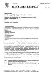 "content": "20. Wahlperiode Drucksache 20/2758 HESSISCHER LANDTAG 12. 08. 2020 Kleine Anfrage Klaus Herrmann (AfD), Dirk Gaw (AfD), Volker Richter (AfD) und Arno Enners (AfD) vom 14.05.2020 Beschaffung von Schutzausrüstung und weiteren medizintechnischen Produkten wegen der Corona-Pandemie – Teil 2 und Antwort Minister des Innern und für Sport Vorbemerkung Fragesteller: Wie unter anderem in den Nachrichten der Hessenschau vom 27.03.2020 zu finden, hat die Landesregierung nicht vorhandene bzw. vorgehaltene Schutzausrüstung im Falle einer Pandemie eingekauft und Unternehmen aufgefordert, dem Land nicht benötigtes Infektionsschutzmaterial zum Kauf anzubieten. Es wurde auch die Bitte an Unternehmen gerichtet, zu prüfen, ob vorhandene freie Kapazitäten ihrer Produktionslinien zur Her- stellung von Atemschutzmasken, chirurgischer Mundnasenschutz, Schutzbrillen, Vollgesichtsmasken, Schutzkittel, Ganzkörper-Schutzanzüge, Desinfektionsmittel und Einmalhandschuhe umzustellen wären. https://www.technologieland-hessen.de/news/Unterstuetzung-bei-der-Bereitstellung-von-Infektionsschutz- material2020 Vorbemerkung Minister des Innern und für Sport: Die Corona-Virus-Pandemie stellt Bund, Land und unser Gesundheitssystem vor große Heraus- forderungen. Eine wichtige Aufgabe bei der Bewältigung der Pandemie ist es, dem Gesundheits- system die erforderlichen Ressourcen zur Verfügung zu stellen. Vor diesem Hintergrund wurde am 23.03.2020 zur Unterstützung des Krisenstabes der Landes- regierung beim Hessischen Ministerium des Innern und für Sport die Task Force Koordinierung Beschaffungsmanagement und Verteilung (TF B/V) eingerichtet. Aufgabe der TF B/V ist die Beschaffung und Verteilung von dringend benötigter persönlicher Schutzausrüstung (PSA) und von weiteren medizinischen Bedarfen für das öffentliche Gesundheitswesen sowie – sofern ge- wünscht – für alle Ressorts der Hessischen Landesregierung. Die Arbeit der TF B/V umfasst im Wesentlichen drei Schwerpunkte: Die Sichtung und Prüfung von Angeboten und Anbietern, die Beschaffung sowie die Verteilung. Auf diese Weise konnte das Land den Bedarfsträgern auch innerhalb sehr kurzer Fristen umfangreich Schutzausrüstung zur Verfügung stellen. Diese Vorbemerkung vorangestellt, beantworte ich die Kleine Anfrage im Einvernehmen mit dem Minister für Soziales und Integration wie folgt: Frage 1. Wen hat das Land mit welchem Verteilerschlüssel mit den o. g. Materialien/Ausrüstungen beliefert (Bitte einzeln aufgliedern in Landkreise/kreisfreie Städte.) Frage 2. Wurden vom Land Krankenhäuser/Kliniken/Pflegeheime oder andere Einrichtungen mit den o.g. Materialien/ Ausrüstungen direkt beliefert? Wenn ja, mit welchem Verteilerschlüssel? Bitte einzeln aufgliedern! Die Fragen 1 und 2 werden aufgrund des Sachzusammenhangs gemeinsam beantwortet. Eingegangen am 12. August 2020 · Bearbeitet am 12. August 2020 · Ausgegeben am 14. August 2020 Herstellung: Kanzlei des Hessischen Landtags · Postfach 3240 · 65022 Wiesbaden · www.Hessischer-Landtag.de",