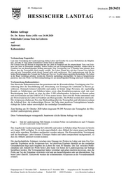 "content": "2 Hessischer Landtag · 20. Wahlperiode · Drucksache 20/3451 Frage 2. Falls 1. zutreffend: Wie viele Proben betrifft dies? Diese Frage kann nicht eindeutig beantwortet werden, da das Entnahmedatum nicht auf jeder Probe eindeutig zu erkennen war bzw. ist. Frage 3. Welches alternative Vorgehen – einschließlich Versand – plant die Landesregierung, um die Prob- lematik einer nicht mehr verwertbaren Probe, wegen zu langer Liegedauer zu vermeiden? Die Landesregierung hat sich bewusst für das derzeit bestehende Verfahren entschieden. Gemein- sam mit den Vertragspartnern wird das Verfahren regelmäßig nachgesteuert, um auftretende Feh- ler zu beseitigen. Beispielsweise wurden die Materialkapazitäten erweitert sowie eine Testung an Samstagen ermöglicht. Frage 4. Wie wird mit Proben verfahren, die erst nach 72 Stunden oder später zur Untersuchung im Labor eintreffen? Grundsätzlich werden alle eingesendeten Proben ausgewertet, da auch bei älteren Proben die Möglichkeit besteht, eine positive Patientin bzw. einen positiven Patienten zu identifizieren. Frage 5. Plant die Landesregierung, weitere Labore mit der Bearbeitung der Proben zu beauftragen? Durch die Beauftragung des ausgewählten Labors stellt das Land eine gleichbleibend hohe Qua- lität und eine Vergleichbarkeit der Testungen sicher. Die Laborkapazitäten sind für die Testungen aktuell ausreichend. Frage 6. Wie und in welchem Zeitrahmen werden die Testergebnisse den Lehrern und den Gesundheitsäm- tern mitgeteilt? Auf die Vorbemerkung sowie auf die Antwort zur Frage 1 wird verwiesen. Wiesbaden, 12. November 2020 Prof. Dr. R. Alexander Lorz",