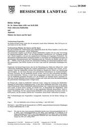 "content": "20. Wahlperiode Drucksache 20/2840 HESSISCHER LANDTAG 13. 07. 2020 Kleine Anfrage Dr. Dr. Rainer Rahn (AfD) vom 26.05.2020 Nicht vollstreckte Haftbefehle und Antwort Minister des Innern und für Sport Vorbemerkung Fragesteller: Die Medien berichten immer wieder über die ansteigende Anzahl offener Haftbefehle. Mitte 2019 lag die An- zahl bundesweit bei über 180.000. Vorbemerkung Minister des Innern und für Sport: Bis zum Zeitpunkt der Vollstreckung eines Haftbefehls durch die Polizei handelt es sich bei allen Haftbefehlen um sogenannte „offene Haftbefehle“. Die statistischen Angaben zu in Hessen offenen Haftbefehlen ergeben sich aus einer Auswertung des Bundeskriminalamtes (BKA), die den Bundesländern quartalsweise zur Verfügung gestellt wird. Hierbei handelt es sich um eine standardisierte Erhebung mit festgelegten Parametern. Die übermittelten Haftbefehlszahlen (tatsächlich handelt es sich hierbei um Fahndungsnotierungen im gemeinsamen Informationssytem und Fahndungssystem der Polizeien des Bundes und der Län- der − INPOL) sind für die Zwecke der statistischen Erhebung aus datenschutzrechtlichen Grün- den anonymisiert. Das INPOL-System ist in erster Linie nicht für statistischen Erhebungen kon- zipiert. Ergänzend wird darauf hingewiesen, dass bei der Betrachtung der Zahlen der offenen bzw. nicht vollstreckten Haftbefehle folgende drei Aspekte grundsätzlich zu beachten sind: Erstens, ein be- stimmter Anteil der Haftbefehle erfordert kein proaktives Handeln der Polizei zur Lokalisierung und Festnahme, da sich diese Personen nach polizeilichen Erkenntnissen im Ausland befinden. Zweitens, Personen, die mit Haftbefehl gesucht werden, sind trotz aller polizeilichen Bemühun- gen nicht lokalisierbar. Drittens, es muss davon ausgegangen werden, dass eine gewisse Anzahl von mit Haftbefehl gesuchten Personen (z.B. mit Wohnsitz im Ausland) bereits verstorben ist, ohne dass hiesige Behörden davon Kenntnis erlangen und somit auch keine Bestandsbereinigung des polizeilichen Fahndungssystems erfolgen kann. Im Übrigen gilt, sobald ein Haftbefehl vollstreckt wurde, erfolgt die Löschung der Haftbefehls- fahndung im polizeilichen Fahndungssystem, so dass dieser Haftbefehl nicht mehr in der statisti- schen Erfassung der offenen Haftbefehle mitberücksichtigt wird. Andererseits kann ein Haftbefehl auch wieder in Kraft gesetzt werden. So besteht bsw. in Deutschland die Möglichkeit, einen verurteilten Straftäter gem. § 456a StPO vor dem eigentlichen Haftende abzuschieben. Nach er- folgter Abschiebung wird der entsprechende Haftbefehl in den polizeilichen Systemen wieder in Kraft gesetzt, um bei erneuter Einreise des Verurteilten, diesen direkt vollstrecken zu können. Den Vorbemerkungen des Fragestellers vorangestellt, beantworte ich die Kleine Anfrage wie folgt: Frage 1. Wie viele Haftbefehle waren in Hessen zum Stichtag 1. April 2020 offen? Mit Stand 1. April 2020 lag die Gesamtzahl der in INPOL ausgeschriebenen hessischen Fahndungen zu offenen Haftbefehlen bei 11.328. Frage 2. Wie viele der unter erstens genannten Haftbefehle betrafen einen Untersuchungshaftbefehl (§§ 112 ff. StPO), einen Unterbringungsbefehl (§ 126a StPO), einen Haftbefehl zur Vorführung in der Hauptverhandlung (§ 230 StPO), einen Sicherungshaftbefehl (§ 453c StPO), einen Vollstreckungs- haftbefehl (§ 457 StPO), einen internationalen Haftbefehl oder einen Haftbefehl nach den Bestim- mungen der ZPO (z.B. § 802g ZPO)? Eingegangen am 13. Juli 2020 · Bearbeitet am 13. Juli 2020 · Ausgegeben am 21. Juli 2020 Herstellung: Kanzlei des Hessischen Landtags · Postfach 3240 · 65022 Wiesbaden · www.Hessischer-Landtag.de",