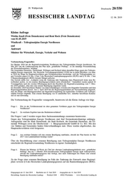 "content": "20. Wahlperiode Drucksache 20/550 HESSISCHER LANDTAG 12. 06. 2019 Kleine Anfrage Wiebke Knell (Freie Demokraten) und René Rock (Freie Demokraten) vom 01.05.2019 Windkraft – Teilregionalplan Energie Nordhessen und Antwort Minister für Wirtschaft, Energie, Verkehr und Wohnen Vorbemerkung Fragesteller: Im Oktober 2016 hat die Regionalversammlung Nordhessen den Teilregionalplan Energie beschlossen. Im Mai 2017 hat die Landesregierung den Plan nach „gründlicher Prüfung“, so die damalige Pressemitteilung des Wirtschaftsministers, bestätigt. Die Gemeinden Diemelsee, Diemelstadt, Willingen und Korbach haben daraufhin Klage gegen den Teilregio- nalplan Energie eingereicht. Der Hessische Verwaltungsgerichtshof (VGH) hat in einem Beschluss von Janu- ar 2018 der Klage im Hauptsachverfahren gute Erfolgsaussichten bescheinigt, weil der Teilregionalplan we- gen Verstoßes gegen § 6 Abs. 4 Satz 3 des Hessischen Landesplanungsgesetzes (HLPG) und § 10 Abs. 1 Satz 4 Raumordnungsgesetz (ROG) formale Mängel aufweise. Das Gericht stellte fest: „Lediglich wenn die Änderung oder Ergänzung eines Planentwurfs keine neue Be- troffenheit auslöst, ist ein erneutes Beteiligungsverfahren nicht erforderlich.“ Tatsächlich wurden jedoch 44 Vorranggebiete nach der zweiten Offenlegung durch den Beschluss der Regionalversammlung vom 7. Okto- ber 2016 geändert, ohne dass eine erneute Beteiligung eingeleitet wurde. Im Dezember 2018 berichteten Medien von Güteverhandlungen zwischen den klagenden Gemeinden und dem Regierungspräsidium Kassel. Am 2. April 2019 hat das Regierungspräsidium per Pressemitteilung mitgeteilt, dass der Haupt- und Planungsausschuss der Regionalversammlung ein ergänzendes Verfahren zum Teilregio- nalplan Energie empfehle. Eine erneute Beteiligung von 52 unmittelbar bzw. mittelbar betroffenen Kommu- nen sei nun notwendig. Die Vorbemerkung der Fragesteller vorangestellt, beantworte ich die Kleine Anfrage wie folgt: Frage 1. Wie ist der Verfahrensstand im oben genannten Verfahren gegen den Teilregionalplan Energie Nordhessen? Frage 3. Zu welchem Ergebnis kam das Mediationsverfahren? Die Fragen 1 und 3 werden wegen ihres Sachzusammenhangs zusammen beantwortet. Gegen den Teilregionalplan Energie Nordhessen sind fünf Normenkontrollanträge anhängig. Antragsteller sind die Stadt Diemelstadt, die Stadt Korbach, die Gemeinde Diemelsee, die Ge- meinde Willingen sowie die Oktoberwind – 1. Bürgergemeinwohl GmbH & Co. KG. Mit den vier Städten und Gemeinden fanden Güteverhandlungen statt. Diese wurden abgebrochen, das Hauptsacheverfahren wird fortgesetzt. Frage 2. Aus welchen Gründen soll eine erneute Beteiligung stattfinden, obwohl der Plan bereits im Mai 2017 vom Landeskabinett bestätigt wurde? Über die Durchführung einer erneuten Beteiligung zum Teilregionalplan Energie Nordhessen entscheidet die Regionalversammlung Nordhessen in eigener Zuständigkeit. Frage 4. Warum hat Minister Al-Wazir als Chef der obersten Landesplanungsbehörde trotz „gründlicher Prüfung“ den am 7. Oktober 2016 beschlossenen Teilregionalplan Energie nicht widersprochen, obwohl das Landesplanungsgesetz klar festlegt, dass nach Änderungen des Planes eine erneute Beteiligung stattfinden müsse? Zu der Frage einer erneuten Beteiligung im Falle der Änderung des Entwurfs eines Regional- plans verweist § 6 des Hessischen Landesplanungsgesetzes auf das Raumordnungsgesetz (ROG). Eingegangen am 12. Juni 2019 · Bearbeitet am 12. Juni 2019 · Ausgegeben am 14. Juni 2019 Herstellung: Kanzlei des Hessischen Landtags · Postfach 3240 · 65022 Wiesbaden · www.Hessischer-Landtag.de",