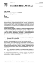 "content": "20. Wahlperiode Drucksache 20/330 HESSISCHER LANDTAG 03. 05. 2019 Kleine Anfrage Moritz Promny (Freie Demokraten) vom 13.03.2019 Demonstrationen „Fridays for Future“ und Antwort Kultusminister Vorbemerkung Fragesteller: Meinungs- und Versammlungsfreiheit sind unverzichtbare Freiheitsrechte, die besonderen Schutz erfordern und selbstverständlich auch allen hessischen Schülerinnen und Schüler zuteilwerden. Darüber hinaus ist es grundsätzlich zu begrüßen, dass junge Menschen aufstehen und sich für ihre Lebenswelt, die Gesellschaft und ihre Anliegen einsetzen, sich mit Zukunftsfragen beschäftigen und zivilgesellschaftliches Engagement zeigen, Verantwortung übernehmen oder aus ihrer Sicht notwendige Maßnahmen einfordern oder Zeichen setzen wollen. Strittig ist inwieweit die Schulpflicht für diese Zwecke ausgesetzt werden kann und welche Maßnah- men ergriffen werden, um diese durchzusetzen. Vorbemerkung Kultusminister: Politisches Engagement Jugendlicher ist grundsätzlich zu begrüßen. Die allgemeine Schulpflicht und die zu ihrer Erfüllung eingerichteten flächendeckenden öffentlichen, schulgeldfreien schuli- schen Angebote sind historische Errungenschaften von größter Wichtigkeit. Klug wäre, das eine zu tun, ohne das andere zu lassen: sich nach der Schule politisch zu engagieren und in der Schu- le die Chancen auf Bildung und individuelle Weiterentwicklung zu ergreifen. Zu demonstrieren ist daher keine Alternative zum Schulbesuch. Die Teilnahme an Demonstrationen rechtfertigt nicht das Fernbleiben vom Unterricht, das als unentschuldigtes Fehlen zu bewerten ist. Diese Vorbemerkungen vorangestellt, beantworte ich die Kleine Anfrage wie folgt: Frage 1. Hat die Landesregierung Kenntnis darüber, wie viele Schülerinnen und Schüler aufgrund der Teilnahme an den Demonstrationen „Fridays for Future“ nicht am Unterricht teilnahmen? (bitte Auflistung nach Datum und Demonstration) Frage 2. Wie viele Schülerinnen und Schüler haben entschuldigt und wie viele unentschuldigt gefehlt? Auf Grund des Sachzusammenhangs werden die Fragen 1 und 2 gemeinsam beantwortet. Die Zahl der Schüler ließe sich nur mit einer Abfrage bei den mehr als 1.800 Schulen des Lan- des erheben und erforderte dort die Überprüfung sämtlicher mehr als 800.000 Schülerakten. Von diesem unverhältnismäßigen Verwaltungsaufwand wurde im Interesse der Lehrkräfte und Schulen abgesehen. Da die Teilnahme an Demonstrationen während der Unterrichtszeit kein Entschuldigungsgrund ist, haben sämtliche Schüler, die anstelle der Teilnahme an schulischen Veranstaltungen demonstriert haben, ohne dass andere Entschuldigungsgründe vorlagen, unent- schuldigt gefehlt. Frage 3. Teilt die Landesregierung die Einschätzung, dass die Teilnahme als besonders begründeter Aus- nahmefall gemäß § 3 Abs. 2 VOGSV zu werten ist und wie verhält es sich ggf. bei wiederholen- der Teilnahme? Nein. Die Kultusministerkonferenz hat bereit 1973 zutreffend festgestellt: „Die Teilnahme an Demonstrationen rechtfertigt nicht das Fernbleiben vom Unterricht […]. Das Demonstrations- recht kann in der unterrichtsfreien Zeit ausgeübt werden.“ Das gilt für die einmalige Demons- trationsteilnahme wie auch für den Wiederholungsfall. Eingegangen am 3. Mai 2019 · Bearbeitet am 3. Mai 2019 · Ausgegeben am 6. Mai 2019 Herstellung: Kanzlei des Hessischen Landtags · Postfach 3240 · 65022 Wiesbaden · www.Hessischer-Landtag.de",