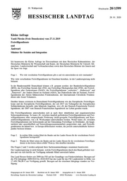 "content": "20. Wahlperiode Drucksache 20/1599 HESSISCHER LANDTAG 28. 01. 2020 Kleine Anfrage Yanki Pürsün (Freie Demokraten) vom 27.11.2019 Freiwilligendienste und Antwort Minister für Soziales und Integration Ich beantworte die Kleine Anfrage im Einvernehmen mit dem Hessischen Kultusminister, der Hessischen Ministerin für Wissenschaft und Kunst, der Hessischen Ministerin für Umwelt, Kli- maschutz, Landwirtschaft und Verbraucherschutz sowie dem Hessischen Minister des Innern und für Sport wie folgt: Frage 1. Wie viele verschiedene Freiwilligendienste gibt es und wie unterscheiden sie sich voneinander? Wie viele verschiedene Freiwilligendienste im Einzelnen bestehen, ist der Landesregierung nicht bekannt. In der Bundesrepublik Deutschland können z.B. genannt werden: der Bundesfreiwilligendienst (BFD), das Freiwillige Soziale Jahr (FSJ), das Freiwillige Ökologischen Jahr (FÖJ), der Freiwil- ligendienst aller Generationen (FdAG), die Freiwilligendienste „weltwärts“, „Kulturweit“ und „Naturweit“, der Andere Dienst im Ausland (ADIA), das Diakonische Jahr im Ausland, Freiwil- ligendienste der Aktion Sühnezeichen Friedensdienste, der Internationale Christliche Friedens- dienst oder Jesuit Volunteers. Darüber hinaus existieren in Deutschland Freiwilligendienste wie das Europäische Freiwilligen- korps und der Europäische Freiwilligendienst, der seit 2017 ein Teilangebot des Europäischen Solidaritätskorps darstellt, oder bilaterale Angebote, wie z.B. der Deutsch-Französische Freiwil- ligendienst, der 2007 vom Deutsch-Französischen Jugendwerk ins Leben gerufen wurde. Die Freiwilligendienste unterscheiden sich je nach ihrer inhaltlichen und organisatorischen Schwerpunktsetzung. So kann z.B. zwischen staatlich geförderten Freiwilligendiensten und Frei- willigendiensten ohne entsprechende Förderung (nicht-geregelte Freiwilligendienste und Kurz- zeitfreiwilligendienste, wie z.B. Workcamps) unterschieden werden. Weiter kann z.B. zwischen Freiwilligendiensten mit Schwerpunkt auf der Entsendung Freiwilliger in Drittländer, die haupt- sächlich oder ausschließlich auf Entwicklungszusammenarbeit ausgerichtet sind, und Freiwilli- gendiensten im Inland bzw. in Europa differenziert werden, die jeweils unterschiedliche Schwer- punkte besitzen können. Frage 2. In welcher Höhe werden Mittel des Bundes und des Landes Hessen für die verschiedenen Freiwil- ligendienste bereitgestellt? Frage 3. Wurden die Mittel seitens des Bundes und des Landes Hessen für die verschiedenen Freiwilligen- dienste in den letzten Jahren erhöht? Wenn ja, bitte detailliert darstellen. Die Fragen 2 und 3 werden aufgrund ihres Sachzusammenhanges zusammen beantwortet. Der Landesregierung ist nicht bekannt, welche Freiwilligendienste durch den Bund gefördert wer- den und wie sich hierfür zur Verfügung stehende Mittel entwickelt haben. Das Land Hessen fördert seit 2009 das FSJ auf der Grundlage von Förderrichtlinien. Bezogen auf die FSJ-Jahrgänge 2009/2010 bis 2018/2019 hat das Land für das FSJ Landesmittel in Höhe von 17.450.786,00 € zur Verfügung gestellt. Bezogen auf die einzelnen Jahrgänge standen zur Ver- fügung: Eingegangen am 28. Januar 2020 · Bearbeitet am 28. Januar 2020 · Ausgegeben am 31. Januar 2020 Herstellung: Kanzlei des Hessischen Landtags · Postfach 3240 · 65022 Wiesbaden · www.Hessischer-Landtag.de",