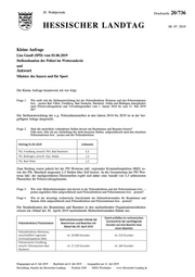 "content": "20. Wahlperiode Drucksache 20/736 HESSISCHER LANDTAG 08. 07. 2019 Kleine Anfrage Lisa Gnadl (SPD) vom 03.06.2019 Stellensituation der Polizei im Wetteraukreis und Antwort Minister des Innern und für Sport Die Kleine Anfrage beantworte ich wie folgt: Frage 1. Wie stellt sich die Stellenentwicklung bei der Polizeidirektion Wetterau und den Polizeistationen bzw. –posten Bad Vilbel, Friedberg, Bad Nauheim, Butzbach, Nidda und Büdingen untergliedert nach Polizeivollzugsdienst und Verwaltungsstellen vom 1. Januar 2016 bis zum 31. Mai 2019 dar? Die Stellenentwicklung der o.g. Polizeidienststellen in den Jahren 2016 bis 2019 ist in der bei- gefügten Anlage dargestellt. Frage 2. Sind alle tatsächlich vorhandenen Stellen derzeit mit Beamtinnen und Beamten besetzt? Falls nein, bitte ich um Aufstellung der nicht besetzten Stellen, aufgeschlüsselt nach den einzelnen Polizeistationen bzw. -posten und der Polizeidirektion. Stichtag 31.05.2019 Unbesetzt PSt. Friedberg, einschl. PPo. Bad Nauheim 5,3 PSt. Büdingen, einschl. Ppo. Nidda 1,3 PSt. Bad Vilbel 1,2 Zum Stichtag waren jedoch bei der PD Wetterau inkl. regionaler Kriminalinspektion (RKI) so- wie der PSt. Butzbach insgesamt 2,5 Stellen über Soll besetzt. In der Gesamtschau der PD Wet- terau inkl. der nachgeordneten Dienststellen ergibt sich daher eine Anzahl von 5,3 unbesetzten Planstellen für Polizeivollzugsbeamte. Frage 3. Wie viele Mehrarbeitsstunden sind derzeit in der Polizeidirektion und den Polizeistationen bzw. – posten angefallen (bitte aufgeschlüsselt nach Polizeidirektion und Polizeistationen bzw. -posten)? Frage 4. Wie ist der derzeitige rechnerische Durchschnitt der Mehrarbeitsstunden für Beamtinnen und Beamte (bitte aufgeschlüsselt nach Polizeidirektion und Polizeistationen bzw. -posten)? Die Stundenkonten der Beamtinnen und Beamten in den nachstehenden Organisationseinheiten wiesen mit Ablauf des 30. Aprils 2019 nachstehende Mehrarbeitsstunden-Stände aus. Damit entfallen im rechnerischen Mehrarbeitsstunden-Stände der Durchschnitt die nachfolgende Polizeidirektion/ Polizeistation Beamtinnen und Beamten mit Stunden auf eine Beamtin bzw. Ablauf des 30. April 2019 einen Beamten Polizeidirektion Wetterau, einschließlich regionale rd. 19.890 Stunden rd. 219 Stunden Kriminalinspektion (RKI) Polizeistation Friedberg, einschl. Polizeiposten Bad rd. 17.110 Stunden rd. 184 Stunden Nauheim Eingegangen am 8. Juli 2019 · Bearbeitet am 8. Juli 2019 · Ausgegeben am 12. Juli 2019 Herstellung: Kanzlei des Hessischen Landtags · Postfach 3240 · 65022 Wiesbaden · www.Hessischer-Landtag.de",