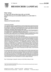"title": "Finanzielle Förderung und wissenschaftliche Signifikanz der \"Gender-Studies\" in Hessen",