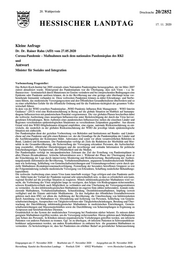 "content": "20. Wahlperiode Drucksache 20/2852 HESSISCHER LANDTAG 17. 11. 2020 Kleine Anfrage Dr. Dr. Rainer Rahn (AfD) vom 27.05.2020 Corona-Pandemie – Maßnahmen nach dem nationalen Pandemieplan des RKI und Antwort Minister für Soziales und Integration Vorbemerkung Fragesteller: Das Robert-Koch-Institut hat 2005 erstmals einen Nationalen Pandemieplan herausgegeben, der im März 2007 zuletzt aktualisiert wurde. Hintergrund des Pandemieplans war die Überlegung, dass sich Viren – v.a. In- fluenzaviren – kontinuierlich durch Mutationen im Genom verändern und bei entsprechenden Bedingungen eine Epidemie oder Pandemie auslösen können, da in der Bevölkerung nur eine geringe oder überhaupt keine vor- bestehende Immunität vorhanden ist. Diese weltweiten Pandemien können zu dabei Erkrankungs- und Sterbe- raten führen, das medizinische Versorgungssystem und den Öffentlichen Gesundheitsdienst überfordern und so zu einer erheblichen Gefahr für die öffentliche Ordnung und für die Funktions-tüchtigkeit der gesamten Volks- wirtschaft führen. In dem von der WHO erstellten Pandemieplan „WHO Pandemic Influenza Risk Management – WHO Interim Guidance“ (2013) wird eine Risikoeinschätzung in Bezug auf die globale Situation im Hinblick auf humanpa- thogene Influenzaviren mit pandemischem Potential vorgenommen. Die vier globalen Phasen beschreiben dabei die weltweite Ausbreitung eines neuartigen Influenzavirus unter Berücksichtigung der durch das Virus hervor- gerufenen Erkrankungen. Beim Auftreten eines pandemischen Influenzavirus stehen die einzelnen Länder und Regionen verschiedenen epidemiologischen Situationen zu verschiedenen Zeitpunkten gegenüber. Aus diesem Grund wird den WHO-Mitgliedstaaten dringend empfohlen, eine eigene, nationale Risikoeinschätzung zu ent- wickeln, die zusätzlich zu der globalen Risikoeinschätzung der WHO die jeweilige lokale epidemiologische Situation mit einbezieht. Der Pandemieplan dient der gezielten Vorbereitung von Behörden und Institutionen auf Bundes- und Länder- ebene auf eine Pandemie und gibt einen Rahmen vor, der die Grundlage für die Pandemiepläne der Länder und die Ausführungspläne der Kommunen bildet. Adressaten sind somit vor allem verantwortlichen Behörden in Bund, Ländern und Kommunen. Der Pandemieplan verfolgt als Ziele die Reduktion der Morbidität und Mor- talität in der Gesamtbevölkerung, die Sicherstellung der Versorgung erkrankter Personen, die Aufrechterhal- tung essentieller, öffentlicher Dienstleistungen und die zuverlässige und zeitnahe Information für politische Entscheidungsträger, Fachpersonal, die Öffentlichkeit und die Medien. Der Pandemieplan verfolgt im interpandemischen Zeitraum das Ziel der Erstellung von Pandemieplänen in allen Ebenen (Krankenhäuser, kritische Infrastrukturen usw.). Während der Phase der Übertragung dient er der Einschätzung der Lage durch intensiviertes Monitoring und Risikobewertung, Beeinflussung der Ausbrei- tungsdynamik (Information der Bevölkerung, Verhaltensmaßnahmen, angepasste kontaktreduzierende Maßnah- men wie Isolierung, Schließung von Gemeinschaftseinrichtungen und Veranstaltungsverbote) sowie durch spe- zielle Maßnahmen (Kontaktpersonennachverfolgung, Feststellung der besonders betroffenen Gruppen) so-wie der Folgenminderung (schnelle medizinische Versorgung von Erkrankten, Schaffung zusätzlicher Behandlungs- kapazitäten). Die weltweite Ausbreitung eines neuen Virus kann innerhalb weniger Tage erfolgen und eine Pandemie auslö- sen. Dabei kann der Verlauf der Pandemie regional sehr unterschiedlich sein, so dass es erforderlich sein kann, regional flexibel auf die jeweilige Situation zu reagieren. Mittels infektionshygienischer Maßnahmen wird ver- sucht, die Verbreitung des Virus möglichst lange zu verzögern, den Schutz von Risikogruppen sicherzustellen, schwere Krankheitsverläufe nach Möglichkeit zu verhindern und eine Überlastung der Versorgungsstrukturen zu vermeiden. Zu den infektionshygienischen Maßnahmen im engeren Sinn zählen insbesondere, kontakt-redu- zierende Maßnahmen, Verhaltensmaßnahmen, Schutzkleidung, Desinfektionsmaßnahmen, Impfung (soweit verfügbar) und der Einsatz antiviraler Medikamente. Zu den Aufgaben des öffentlichen Gesundheitswesens gehören nach dem IfSG vor allem die Aufklärung der Bevölkerung, die Unterbrechung von Infektionsketten durch Anordnung von Maßnahmen wie Absonderung und Isolierung von Personen, Schließung von Gemein- schaftseinrichtungen, Aussprechen von Tätigkeitsverboten oder Tätigkeitsbeschränkungen, Beratung und Über- wachung der Durchführung infektionshygienischer Maßnahmen in medizinischen Einrichtungen, Gemein- schaftseinrichtungen und Massenunterkünften sowie die Durchführung von Schutzimpfungen in Ergänzung zu Arztpraxen und betriebsärztlichen Diensten. Grundsätzlich ist das System der medizinischen Versorgung bei Pandemien stärker belastet. Es müssen daher geeignete Maßnahmen ergriffen werden, um die Versorgung sicherzustellen. Hierzu gehören auch Maßnahmen zum Schutz des Personals. In Kliniken müssen organisatorische Vorkehrungen getroffen werden, um infizierte Patienten von anderen Patienten zu trennen. Ggf. ist zu überlegen, ob infizierte Patienten in Schwerpunktkran- kenhäuser aufgenommen werden, um andere Krankenhäuser zu entlasten bzw. die genannten Maßnahmen zu vermeiden. Zu berücksichtigen ist, dass bei Pandemien ein erhöhter Bedarf an persönlicher Schutzausrüstung Eingegangen am 17. November 2020 · Bearbeitet am 17. November 2020 · Ausgegeben am 20. November 2020 Herstellung: Kanzlei des Hessischen Landtags · Postfach 3240 · 65022 Wiesbaden · www.Hessischer-Landtag.de",