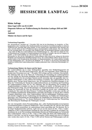 "content": "20. Wahlperiode Drucksache 20/1634 HESSISCHER LANDTAG 27. 01. 2020 Kleine Anfrage Klaus Gagel (AfD) vom 02.12.2019 Eingesetzte Software zur Wahlberechnung des Hessischen Landtages 2018 und 2009 und Antwort Minister des Innern und für Sport Vorbemerkung Fragesteller: Die „hessenschau.de“ berichtete am 7. November 2018, dass bei der Berechnung von Ausgleichs- zu Über- hangmandaten unter Umständen selbst Nachkommastellen im korrigierten Zweitstimmenergebnis in mehreren Wahlkreisen den Ausschlag dafür geben könnten, ob eine Fraktion einen Abgeordneten mehr bekommt oder nicht, weil alle Zahlen aus den 55 Wahlkreisen hierzu zusammenaddiert werden müssten. Wie viele Stimmen hier den Ausschlag geben, ob es besonders enge Wahlkreise gäbe, die diesbezüglich überprüft werden müssten – dazu stellte das Büro des Landeswahlleiters keine Modellrechnungen an. „Dazu fehlt uns schlicht die Zeit. Die Berechnung und Verteilung von Ausgleichmandaten seien überdies so komplex, dass nur ein Computer sie schaffe“, so der Landeswahlleiter zur „hessenschau.de“ am 7. November 2018. Klarzustellen ist, dass sich die Äußerungen des Landeswahlleiters dabei nicht auf die Anfrage des Hessischen Rundfunks nach hypothetischen Modellberechnungen bezog. Der Landeswahlleiter äußerte sich der Presse ge- genüber konkret zu der Komplexität der Berechnung von Ausgleichsmandaten. Der Landeswahlleiter bestätigte in seiner Stellungnahme vom 1. Juli 2019 an das WahlprfG., (S. 13 Absatz 3), dass für diese aufwendigen und komplexen Arbeiten beim Landeswahlausschuss Computer prädestiniert seien, welche diese Berechnungen vor- nähmen. Vorbemerkung Minister des Innern und für Sport: Der Landeswahlleiter hat in seiner Stellungnahme gegenüber dem Wahlprüfungsgericht mit Schreiben vom 1. Juli 2019 darauf hingewiesen, dass die vom Fragesteller zitierte Äußerung an- lässlich eines Presseinterviews am 7. November 2018 erfolgte und kein wörtliches Zitat darstellt. Die Äußerung habe sich in der Phase der Vorbereitung der Feststellung des Landesergebnisses auf eine Anfrage des Hessischen Rundfunks nach hypothetischen Modellberechnungen bezogen, wie viele Stimmen bei den jeweiligen Parteien jeweils notwendig sind, um gegenüber dem vor- läufigen Wahlergebnis zu einer anderen Sitzverteilung zu kommen. Der Landeswahlleiter hat im Rahmen dieser Anfrage darauf hingewiesen, dass für hypothetische Modellberechnungen in der Phase der Vorbereitung der Sitzung des Landeswahlausschusses zur Ermittlung und Feststellung des Landesergebnisses keine Zeit sei. Die Äußerung, dass die Berechnung und Verteilung der Ausgleichsmandate so komplex sei, dass nur ein Computer sie schaffe, sei überspitzt und sei vor dem Hintergrund erfolgt, dass die Berechnungen von Ausgleichsmandaten iterativ durch eine Er- höhung der Gesamtzahl der Sitze des Hessischen Landtags mit jeweils einer vollständigen Be- rechnung der Sitze nach dem Hare/Niemeyer-Verfahren durchgeführt werden muss und dies auf der Grundlage hypothetischer Wahlergebnisse aufwendig und komplex ist und für diese Arbeiten Computer prädestiniert seien. Dem Landeswahlleiter sind als unabhängigem Wahlorgan gesetz- lich einzelne Aufgaben bei der Vorbereitung und Durchführung von Wahlen und Abstimmungen übertragen; eine Überprüfung der Rechtmäßigkeit der Handlungen der Wahlorgane steht nur den Wahlprüfungsinstanzen zu. Vor diesem Hintergrund ist der Landesregierung eine Überprüfung oder Bewertung der Handlungen der Wahlorgane verwehrt. Die vom Antragsteller zitierte Pressedarstellung, dass „selbst Nachkommastellen im korrigierten Zweitstimmenergebnis in mehreren Wahlkreisen“ einen Ausschlag über die Zahl der Sitze geben können, ist zudem unzutreffend, da Landesstimmen immer ganzzahlig sind. Ein Quotient, der in der Regel Nachkommastellen aufweist, ergibt sich erst aus der nach § 10 Abs. 3 Satz 1 Landes- wahlgesetz (LWG) vorgeschriebenen Zuteilung der Sitze nach dem Verhältnis der jeweiligen Lan- desstimmen der an der Sitzverteilung teilnehmenden Parteien und Wählergruppen zur Gesamtzahl ihrer Landesstimmen. Nach § 10 Abs. 3 Satz 2 LWG erhält jede Partei oder Wählergruppe zu- nächst so viele Sitze, wie sich für sie ganze Zahlen ergeben. Sofern danach noch Sitze zu vergeben sind, werden diese nach § 10 Abs. 3 Satz 3 LWG auf die Parteien und Wählergruppen nach der Eingegangen am 27. Januar 2020 · Bearbeitet am 27. Januar 2020 · Ausgegeben am 29. Januar 2020 Herstellung: Kanzlei des Hessischen Landtags · Postfach 3240 · 65022 Wiesbaden · www.Hessischer-Landtag.de",