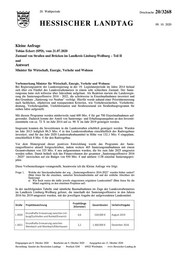 "content": "Hessischer Landtag · 20. Wahlperiode · Drucksache 20/3268 5 Grundhafte Erneuerung zwischen Merenberg und Meren- L 3370 1,5 858.000 € berg/Barig-Selbenhausen, einschl. Ortsdurchfahrt Merenberg Grundhafte Erneuerung in der Ortsdurchfahrt Wein- L 3451 0,6 440.000 € bach/Edelsberg Grundhafte Erneuerung in der Ortsdurchfahrt Hada- L 3462 1,6 1.200.000 € mar/Niederhadamar Frage 2. Wie viele Meldungen weiterer sanierungsbedürftiger Streckenabschnitte wurden nach 2016 ge- meldet? (Bitte listen Sie diese auf) a) Wie viele dieser Abschnitte wurden durch das Land kontrolliert und für welche Abschnitte wurden daraufhin Maßnahmen eingeleitet? (Bitte listen Sie die Abschnitte und die eingeleite- ten Maßnahmen einzeln auf) Im Zuge der regelmäßigen Streckenkontrollen des Betriebsdienstes von Hessen Mobil werden die Landesstraßen auf ihre Verkehrssicherheit hin überprüft. Soweit hierbei deutliche Ver- schlechterungen von bislang in der Sanierungsoffensive nicht berücksichtigen Streckenabschnit- ten festzustellen sind, werden diese nachträglich in das Bauprogramm aufgenommen. In dieser Weise wurden seit dem Jahr 2017 folgende Maßnahmen in Angriff genommen: Projektlänge Verkehrs- Straße Projektbezeichnung Gesamtkosten [Kilometer] freigabe Erneuerung eines Durchlasses zwischen Villmar/ L 3021 0,1 40.000 € 2020 Weyer und Selters/Münster L 3021 Felshangsicherung bei Weinbach/Freienfels 0,1 160.000 € 2020 Deckenerneuerung zwischen Mengerskirchen und November L 3046 0,3 40.000 € Greifenstein/Arborn 2017 Beseitigung eines Böschungsrutsches bei Villmar/ L 3323 0,8 1.280.000 € 2020 Aumenau Grundhafte Erneuerung zwischen Abzweig Wein- L 3323 2,6 1.320.000 € 2021 bach und Abzweig Weinbach/Gräveneck Frage 3. Welche Straßenbaumaßnahmen (Neubau und Sanierung von Kreisstraßen) hat das Land Hessen in den Jahren 2016 bis 2020 im Landkreis Limburg-Weilburg gefördert? (Bitte einzeln und mit der Zuwendungssumme auflisten) Die nachfolgende Tabelle enthält sämtliche Straßenbaumaßnahmen des Landkreises Limburg- Weilburg, die seitens des Landes Hessen seit dem Jahr 2016 nach den Bestimmungen des Ge- meindeverkehrsfinanzierungsgesetzes bzw. des Hessischen Mobilitätsfördergesetzes gefördert wurden. Straße Projektbezeichnung Gesamtzuwendungen K 448 Ausbau der Kreuzung zum Kreisverkehrsplatz in Merenberg 272.300 € K 450 Ausbau der Ortsdurchfahrt Löhnberg, Ortsteil Obershausen 159.600 € K 451 Ortdurchfahrt Mengerskirchen, Ortsteil Waldernbach 228.200 € K 459 Ausbau der Ortsdurchfahrt Oberweyer, Stadt Hadamar 336.400 € K 477 Ersatzneubau Elbbachbrücke in Elz und Umbau 1.275.400 € K 483 Umbau des Knotenpunkts mit der L 3278 58.100 € K 502/ Ausbau der Ortsdurchfahrt Hünfelden-Mensfelden 479.500 € K 501 K 503 Ausbau zwischen Heringen, Gemeinde Hünfelden und der B 417 560.000 € Wiesbaden, 2. Oktober 2020 Tarek Al-Wazir",