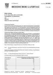 "content": "20. Wahlperiode Drucksache 20/2493 HESSISCHER LANDTAG 27. 04. 2020 Kleine Anfrage Dr. Dr. Rainer Rahn (AfD) vom 02.03.2020 Nebentätigkeiten von Polizeibeamten und Antwort Minister des Innern und für Sport Vorbemerkung Fragesteller: Die Gewerkschaft der Polizei (GdP) beklagte kürzlich, dass zahlreiche junge Polizeibeamte eine Nebentätigkeit ausüben, da sie sich ansonsten die Lebenshaltungskosten vor allem in der Großstadt kaum noch leisten können. Nach Angaben der Presse betrifft dies ca. 8 % aller Polizeibeamte, wobei die Nebentätigkeiten teilweise im Angestelltenverhältnis ausgeübt werden, teilweise selbständig bzw. freiberuflich. Entgeltlich ausgeübte Neben- tätigkeiten sind nach § 79 des Hessischen Beamtengesetzes genehmigungspflichtig, wobei die Genehmigung nur dann versagt werden kann, wenn durch die Nebentätigkeit die Erfüllung der dienstlichen Pflichten behindert wird, ein Interessenkonflikt entstehen kann oder das Ansehen der öffentlichen Verwaltung beeinträchtigt wird. Vorbemerkung Minister des Innern und für Sport: Nach § 73 Abs. 1 des Hessischen Beamtengesetzes (HBG) ist die Übernahme von Nebentätigkeiten durch Beamtinnen und Beamte grundsätzlich genehmigungspflichtig. Zu den genehmigungspflichti- gen Nebentätigkeiten gehört dabei nicht nur die Ausübung von entgeltlichen, sondern auch die von unentgeltlichen Beschäftigungen, wie z.B. die Übernahme einer nicht für Angehörige wahrzuneh- menden unentgeltlichen Vormundschaft, Betreuung oder Pflegschaft (§ 73 Abs. 1 Nr. 1 HBG) sowie die Mitarbeit in einem Gewerbebetrieb oder einem freien Beruf (§ 73 Abs. 1 Nr. 3 HBG). Somit vermag die bloße Anzahl der genehmigten Fälle keine Aussage über den zeitlichen und finanziellen Umfang der tatsächlich ausgeübten Nebentätigkeiten zu treffen. Zudem ist zu berücksichtigen, dass es durchaus vorkommen kann, dass durch den Dienstherrn eine bestimmte Nebentätigkeit zwar ge- nehmigt wurde, diese durch die Beamtin oder den Beamten dann letztlich doch nicht (mehr) bzw. lediglich in einem geringeren Umfang als genehmigt ausgeübt wird. Diese Vorbemerkungen vorangestellt beantworte ich die Kleine Anfrage wie folgt: Frage 1. Wie viele Polizeibeamte des Landes Hessen üben derzeit eine genehmigungspflichtige Nebentätig- keit aus? Derzeit wurde insgesamt 1248 Polizeibeamtinnen und -beamte die Ausübung von genehmigungs- pflichtigen Nebentätigkeiten gestattet. Frage 2. In welchen Besoldungsgruppen befinden sich die unter 1. genannten Beamten? Zur Beantwortung wird auf die nachfolgende Tabelle verwiesen. Anzahl der Polizeibeamtinnen und -beamte, die aktuell eine genehmi- Besoldungsgruppe gungspflichtige Nebentätigkeit ausüben A 9 (Anwärter) 206 A9 148 A 10 565 A 11 210 A 12 71 A 13 35 A 13 h.D. 4 A 14 5 A 15 3 A 16 1 Gesamt 1248 Eingegangen am 27. April 2020 · Bearbeitet am 27. April 2020 · Ausgegeben am 29. April 2020 Herstellung: Kanzlei des Hessischen Landtags · Postfach 3240 · 65022 Wiesbaden · www.Hessischer-Landtag.de",