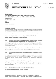 "content": "20. Wahlperiode Drucksache 20/1721 HESSISCHER LANDTAG 21. 02. 2020 Kleine Anfrage Sabine Waschke (SPD), Ulrike Alex (SPD), Wolfgang Decker (SPD), Kerstin Geis (SPD), Torsten Warnecke (SPD) und Marius Weiß (SPD) vom 12.12.2019 Behördenzentrum Fulda und Antwort Minister der Finanzen Vorbemerkung Fragesteller: Die Berichterstattung im Umfeld des eindrucksvollen siebzigjährigen Jubiläums des Landgerichtes in Fulda weist auch auf große bauliche Mängel im Behördenzentrum hin. So heißt es beispielsweise, dass seit Jahren der Putz von der Decke bröckele, zudem seit Jahren nichts passiere. Diese Vorbemerkung des Fragestellers vorangestellt, beantworte ich die Kleine Anfrage wie folgt: Frage 1. Ist es richtig, dass eine Sanierungsentscheidung erst im Frühjahr 2020 fallen soll? Dass eine Sanierung erfolgen wird, ist bereits entschieden. Frage 2. Ist es richtig, dass ein Neubau für das im Behördenzentrum angesiedelte Finanzamt geplant wird und sich somit die Sanierung für den Bereich der Justiz weiter hinauszögern wird? Es ist richtig, dass geplant ist, dass das Finanzamt in eine neue Unterbringung umzieht. Ob dies zu einer Verlängerung der Dauer der Sanierung des Bereichs der Justiz führt, kann im Moment noch nicht gesagt werden. Frage 3. Wann ist mit einer Unterbringung der Justiz in neuen oder sanierten Räumlichkeiten zu rechnen? Dies kann im Moment noch nicht gesagt werden. Eine zeitnahe Sanierung wird angestrebt. Frage 4. Wie hoch sind die Gesamtmietkosten der Immobilie Behördenzentrum für die 30-jährige Vertrags- laufzeit? Die vertraglich vereinbarte Jahreskaltmiete beträgt aktuell 2.520.524,64 € und wird in bestimmten Abständen an die Entwicklung des Verbraucherpreisindex angepasst. Wie sich dieser entwickelt und wie hoch damit die Miete im Laufe der 30 Jahre sein wird, kann insoweit nur geschätzt werden. Frage 5. Ist es üblich, dass nach 15 Jahren ein Mietobjekt offenbar generalsaniert werden muss? Das Herabfallen des Putzes resultiert nach derzeitigem Kenntnisstand des Landes aus einer man- gelhaften Ausführung des Putzgewerks beim Bau des Objekts in den 1990er Jahren. Derartige Mängel sind nicht üblich. Frage 6. Mit welchen Sanierungskosten für die Immobilie rechnet das Land Hessen? Die Kosten der Sanierung werden auf 10,8 Mio. € geschätzt. Eingegangen am 21. Februar 2020 · Bearbeitet am 21. Februar 2020 · Ausgegeben am 25. Februar 2020 Herstellung: Kanzlei des Hessischen Landtags · Postfach 3240 · 65022 Wiesbaden · www.Hessischer-Landtag.de",