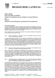 "content": "20. Wahlperiode Drucksache 20/1002 HESSISCHER LANDTAG 09. 10. 2019 Kleine Anfrage Marius Weiß (SPD) vom 07.08.2019 Umgang der Umweltministerin mit den „Steingärten“ im eigenen Ministerium und Antwort Ministerin für Umwelt, Klimaschutz, Landwirtschaft und Verbraucherschutz Vorbemerkung Fragesteller: Die hessische Umweltministerin Priska Hinz möchte laut eigenen Angaben diverse Maßnahmen ergreifen, um den Arten- und Pflanzenschutz in Hessen voranzutreiben. Dazu möchte sie auch Initiativen gegen so genannte „Steingärten“, also Gärten ohne nennenswerte Bepflanzung, ergreifen. Wer sich allerdings den Garten des Umweltministeriums anschaut und die entsprechende Berichterstattung dazu liest, wird erkennen, dass die Ministerin von anderen fordert, was sie selbst nicht einhält. Diese Vorbemerkung des Fragestellers, beantworte ich die Kleine Anfrage im Einvernehmen mit dem Minister der Finanzen wie folgt: Frage 1. Welche Vereinbarungen zur Gestaltung der Außen- und Gartenflächen wurden im Mietvertrag über das Umweltministerium vereinbart? Es wurde mietvertraglich vereinbart, bei der Planung und Realisierung des Neubaus und der Sanierung des Bestandsgebäudes ein besonderes Augenmerk auf den Verantwortlichkeitsbereich des Ministeriums zu legen. Hinsichtlich der Bepflanzung der Außenanlagen wurde die bevor- zugte Verwendung von Vogel- und Insektennährgehölzen vertraglich festgehalten. Auf die Not- wendigkeit der Einhaltung der Baumschutzsatzung der Stadt Wiesbaden wurde explizit hinge- wiesen. Zudem wurde vereinbart, die Bodenversiegelung auf das geringste mögliche Maß zu reduzieren. Im Zuge der Ausführungsplanung wurde außerdem die Berücksichtigung einheimi- scher Pflanzen als Forderung an den Vermieter adressiert. Frage 2. Warum hat die Ministerin nicht schon beim Bezug des Gebäudes des Umweltministeriums darauf geachtet, dass der Außenbereich insektenfreundlich gestaltet wird? Bereits nach teilweiser Fertigstellung der Bepflanzung der Freiflächen hat das Ministerium für Umwelt, Klimaschutz, Landwirtschaft und Verbraucherschutz (HMUKLV) festgestellt, dass diese den mietvertraglichen Vorgaben in einigen Teilen entspricht und in anderen Teilen nicht. Es wurde ein externes Freiraumplanungsbüro damit beauftragt, die Bepflanzung auf die ver- tragsgerechte Erfüllung zu überprüfen. Zudem wurde die Erarbeitung einer Neukonzeption für die Freiflächen beauftragt, die den Anforderungen nach einer Außenanlage mit ökologischer Vielfalt gerecht wird. Frage 3. Laut Berichterstattung des „Wiesbadener Kuriers“ vom 20. April 2019 wollte die Umweltministe- rin mit dem Eigentümer der Immobilie bzgl. der Umgestaltung des Außenbereiches in Kontakt treten. Wann erfolgte dieser Kontakt und welches Ergebnis hatte er? Die Maßnahmen im Außenbereich wurden während der gesamten Bau- und Sanierungsphase neben einer Vielzahl anderer Fragen in regelmäßigen Treffen zwischen dem Vermieter, den von ihm beauftragten Firmen, dem LBIH als Mieter und dem Umweltministerium als Nutzer behan- delt. Hierzu gab es Unstimmigkeiten. In diesem Zusammenhang ist darauf hinzuweisen, dass die Freiflächen nicht vom Land Hessen, sondern vom Vermieter als Auftraggeber abgenommen werden, das Land Hessen über diesen Vorgang also nur in Kenntnis gesetzt wird. Mit Fertig- stellung von Teilen der Außenanlage hat das Umweltministerium Anfang August diesen Jahres Kontakt mit dem Vermieter bzgl. der Umgestaltung von Teilflächen aufgenommen. Es liegt mittlerweile das Einverständnis des Vermieters vor, dass diese Teilflächen umgestaltet werden können. Eingegangen am 9. Oktober 2019 · Bearbeitet am 9. Oktober 2019 · Ausgegeben am 14. Oktober 2019 Herstellung: Kanzlei des Hessischen Landtags · Postfach 3240 · 65022 Wiesbaden · www.Hessischer-Landtag.de",