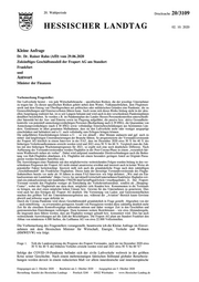 "content": "20. Wahlperiode Drucksache 20/3109 HESSISCHER LANDTAG 02. 10. 2020 Kleine Anfrage Dr. Dr. Rainer Rahn (AfD) vom 29.06.2020 Zukünftiges Geschäftsmodell der Fraport AG am Standort Frankfurt und Antwort Minister der Finanzen Vorbemerkung Fragesteller: Der Luftverkehr besitzt – wie jede Wirtschaftsbranche – spezifischen Risiken, die der jeweilige Unternehmer zu tragen hat. Zu diesen spezifischen Risiken gehört neben dem Wetter, Vulkanausbrüchen, dem Fluglotsen- streik und dem Entzug von Überflugrechten aus politischen oder militärischen Gründen eine Pandemie, die zu Grenzschließungen und Einreiseverboten führen kann. Auch wenn sich dieses Risiko bislang nicht in der aktu- ellen Ausprägung realisiert hat, ist es seit Langem bekannt und wird auch in den verschiedenen Pandemieplänen detailliert beschrieben. So werden z.B. im Pandemieplan des Landes Hessen Personenkontrollen unterschiedli- cher Intensität bei der Aus- und Einreise sowie im Flugzeug aufgeführt, die passive bzw. aktive Gesundheits- kontrolle von potentiell ansteckungsverdächtigen Personen (Beobachtung nach § 29 IfSG), die Quarantäne von Ansteckungsverdächtigen (nach § 30 IfSG) sowie vollständige Einreisebeschränkungen aus bestimmten Län- dern. Gemeinsam ist allen genannten Maßnahmen, dass sie den Luftverkehr mehr oder weniger ausgeprägt einschränken und behindern und u.U. auch vollständig zum Erliegen bringen können. Die aufgeführten Einschränkungen können u.U. – so wie aktuell – über Monate andauern und ggf. auch zu mittel- und langfristigen Umstrukturierungen der Branche führen. So prognostizierte der Vorstandsvorsitzende der Fraport AG kürzlich in einem Interview in der FAZ, dass im Dezember 2020 etwa 30 % bis 40 % des bisherigen Verkehrsaufkommens erreicht werden wird und 2021 etwa 50 % bis 60 %. Vergleich man die Zah- len mit den bisherigen Wachstumsprognosen für 2021, so ergibt sich eine noch deutlichere Differenz. Nach Auffassung des Vorstandsvorsitzenden werden Flughäfen in der Post-Corona-Phase in einem „wesentlich här- teren Wettbewerb stehen als vorher“. Dabei wird aufgrund zunehmender Direktverbindungen auch die Bedeu- tung von Hub-Flughäfen abnehmen, d.h. Flughäfen mit einem besonders geringen Anteil an Originär-Passa- gieren werden besonders betroffen sein. Die Auswirkungen einer Pandemie mit den möglicherweise weitreichenden Folgen wurden bislang in den ver- schiedenen Prognosen der Fraport AG nicht einmal ansatzweise erwähnt und insoweit auch in keiner Weise als potentieller Faktor berücksichtigt. Insoweit stellt sich auch die grundsätzliche Frage nach dem zukünftigen „Geschäftsmodell“ des Frankfurter Flughafens. Dieses hatte der derzeitige Vorstandsvorsitzende des Flugha- fenbetreibers bereits vor mehr als 10 Jahren in einem FAZ-Interview wie folgt definiert: „Wir sind ein Ein- kaufszentrum mit Landebahn“ (https://www.faz.net/aktuell/wirtschaft/unternehmen/frankfurter-flughafen-wir- sind-ein-einkaufszentrum-mit-landebahn-1784258.html?printPagedArticle=true#pageIndex_2). Der Fraport- Vorstand versteht den Flughafen weniger als Einrichtung der Verkehrsinfrastruktur, sondern als „Shopping- Center“, wobei der Flugbetrieb nur dazu dient, möglichst viele Kunden bzw. Konsumenten in die Terminals zu bringen, um dort einen möglichst hohen Umsatz bzw. Gewinn für das Unternehmen zu generieren. Dies wird auch bei den Erträgen der Fraport AG deutlich. Die Vermietung von Laden- und Gastronomieflächen machen den größten Teil der Unternehmensergebnisse aus, während der „Aviation“-Bereich kaum Gewinne abwirft und teilweise sogar defizitär ist. Durch die Corona-Pandemie wird dieses Geschäftsmodell grundsätzlich in Frage gestellt. Abgesehen von der – auch mittelfristig – zu erwartenden geringeren Anzahl von Passagieren werden diese zukünftig deutlich mehr Zeit für die einzelnen Kontrollvorgänge aufwenden müssen und daher weniger Zeit in den Geschäften und gastronomischen Einrichtungen verbringen. Dazu kommen weitere Restriktionen – wie etwa Abstandsregeln, die insgesamt dazu führen werden, dass am Flughafen weniger gekauft bzw. konsumiert wird. Dies hat auch weitreichende Auswirkungen auf die Zahl der Beschäftigten. Die Fraport AG plant am Standort Frankfurt den Abbau von mindestens 4.000 Stellen, die Lufthansa AG von etwa 22.000 Vollzeitstellen. Die Vorbemerkung des Fragestellers vorangestellt, beantworte ich die Kleine Anfrage im Einver- nehmen mit dem Hessischen Minister für Wirtschaft, Energie, Verkehr und Wohnen (HMWEVW) wie folgt: Frage 1. Teilt die Landesregierung die Prognose des Fraport-Vorstandes, nach der im Dezember 2020 etwa 30 % bis 40 % des früheren Verkehrs erreicht werden wird und 2021 etwa 50 % bis 60 %? Infolge der COVID-19-Pandemie befindet sich der zivile Luftverkehr weltweit in der größten Krise seiner Geschichte. Nach einem mehrmonatigen faktischen Stillstand globaler Reisebezie- hungen werden derzeit in einem reduzierten Maß vor allem innerdeutsche und innereuropäische Eingegangen am 2. Oktober 2020 · Bearbeitet am 2. Oktober 2020 · Ausgegeben am 5. Oktober 2020 Herstellung: Kanzlei des Hessischen Landtags · Postfach 3240 · 65022 Wiesbaden · www.Hessischer-Landtag.de",