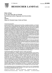 "content": "2 Hessischer Landtag · 20. Wahlperiode · Drucksache 20/3090 In eigenen Zuständigkeiten kann die Landesregierung allerdings weder Verkehrsrechte von Luftverkehrsgesellschaften einschränken oder entziehen, noch bilaterale Luftverkehrsabkommen aufkündigen. Es obliegt der Bundesregierung, sich dieser Angelegenheit anzunehmen und ent- sprechende Gespräche und Verhandlungen mit dem Emirat Kuwait zu führen. Hierfür setzt sich die Landesregierung ein. Der aktuelle Sachstand der Gespräche zwischen dem Emirat Kuwait und der Bundesrepublik Deutschland wurde beim Bundesministerium für Verkehr und digitale Infrastruktur (BMVI) er- fragt. Diese Vorbemerkungen vorangestellt, beantworte ich die Kleine Anfrage wie folgt: Frage 1. Hält es die Landesregierung für hinnehmbar, dass Passagieren mit israelischer Staatsangehörigkeit von einzelnen Fluglinien die Beförderung von einem Flughafen der Bundesrepublik – z.B. dem Frankfurter Flughafen – alleine aufgrund ihrer Staatsangehörigkeit verweigert wird? Die Landesregierung hält es nicht für hinnehmbar, Passagieren aufgrund ihrer Staatsangehörig- keit die Beförderung vom Flughafen Frankfurt oder von anderen Flughäfen in der Bundesrepub- lik Deutschland zu verweigern. Frage 2. Falls erstens unzutreffend: Hat die Landesregierung den genannten Vorfall aus dem Jahr 2017 zum Anlass genommen, um die Bundesregierung aufzufordern, das Problem in geeigneter Weise zu lösen, z.B. durch Verhandlungen mit dem Staat Kuwait oder durch Entzug der Landerechte? Frage 3. Falls zweitens zutreffend: Mit welchem Ergebnis? Frage 4. Falls zweitens unzutreffend: Warum nicht? Die Fragen 2, 3 und 4 werden wegen ihres Sachzusammenhangs zusammen beantwortet. Nach Auskunft des BMVI hat die Bundesregierung sich unmittelbar nach dem erstinstanzlichen Urteil des Landgerichts Frankfurt im Jahr 2017 auf unterschiedlichen Ebenen dafür eingesetzt, dass Kuwait israelischen Staatsangehörigen die Einreise zum Zwecke des Flughafentransits ge- währt, und verdeutlicht, dass dies für Deutschland von hoher Wichtigkeit ist. In den Gesprächen mit der kuwaitischen Regierung konnte jedoch kein Einvernehmen hergestellt werden. Die von der Bundesregierung vorgeschlagene Öffnung des Transitverkehrs für israelische Staatsangehö- rige lehnte die kuwaitische Seite ab. Innerhalb des geltenden Rechtsrahmens hat das BMVI keine Möglichkeiten, den Flugbetrieb von Kuwait Airways in Deutschland einzuschränken. Die bilateralen Luftverkehrsvereinbarun- gen mit Kuwait sehen dies nur bei einem Rechtsverstoß durch Kuwait Airways (Art. 4 Abs. 1 des Luftverkehrsabkommens vom 30. April 1974) vor, der in den genannten Urteilen nicht fest- gestellt worden ist. Das BMVI hat allerdings die von der kuwaitischen Seite bei anderer Gelegenheit geforderte Ausweitung der Verkehrsrechte für Kuwait Airways in Deutschland abgelehnt. Es werde keine zusätzlichen Luftverkehrsrechte geben, bis sich Kuwait in dieser Angelegenheit bewegt. Frage 5. Plant die Landesregierung angesichts des aktuellen Münchener Falles, das Problem in geeigneter Weise anzugehen, z.B. über eine Gesetzesinitiative im Bundesrat? Die Landesregierung hat keine eigenen Zuständigkeiten in Fragen der Gewährung von Luftver- kehrsrechten. Eine Gesetzesinitiative über den Bundesrat könnte sich nur auf die deutsche Rechtsordnung beziehen, welche im vorliegenden Fall nicht betroffen ist. Die Rechtsordnung des Emirates Kuwait kann auf diesem Weg ebenso wenig beeinflusst werden wie der Inhalt gül- tiger bilateraler Luftverkehrsabkommen als völkerrechtliche Grundlage für den internationalen Luftverkehr. Letztendlich ist es aufgrund der in Kuwait geltenden Rechtslage keiner Luftver- kehrsgesellschaft möglich, israelische Staatsangehörige nach Kuwait zu befördern. Frage 6. Welche rechtlichen Möglichkeiten sieht die Landesregierung, Unternehmen in Deutschland die Geschäftstätigkeit zu untersagen, wenn sie im Rahmen dieser Tätigkeit Gesetze anwenden, die mit unserer Rechtsordnung nicht vereinbar sind? Die Anwendung von in Deutschland nicht anwendbaren Gesetzen kann Kuwait Airways nicht vorgeworfen werden. Die vertragliche Weigerung, israelische Staatsangehörige nach Kuwait zu befördern, ist wegen tatsächlicher Unmöglichkeit rechtlich unbestritten. Wiesbaden, 31. August 2020 Tarek Al-Wazir",