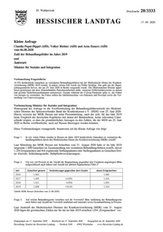 "content": "20. Wahlperiode Drucksache 20/3333 HESSISCHER LANDTAG 17. 09. 2020 Kleine Anfrage Claudia Papst-Dippel (AfD), Volker Richter (AfD) und Arno Enners (AfD) vom 04.08.2020 Zahl der Behandlungsfehler im Jahre 2019 und Antwort Minister für Soziales und Integration Vorbemerkung Fragestellerin: 14.553 fachärztliche Gutachten zu vermuteten Behandlungsfehlern hat der Medizinische Dienst der Kranken- versicherung (MDK) 2019 erstellt. In jedem vierten Fall wurde ein Fehler bestätigt. Das geht aus der Begut- achtungsstatistik hervor, die am 25. Juni 2020 in Berlin vorgestellt wurde. Die Medizinischen Dienste appel- lieren gemeinsam mit dem Aktionsbündnis Patientensicherheit dafür, anonyme Fehlermeldesysteme zu nutzen und gezielte Sicherheitsmaßnahmen umzusetzen. Gerade während der Corona-Pandemie gelte es, die Fehler von morgen zu vermeiden. Im Fokus stehen der Infektionsschutz von Patienten und Personal sowie die Ver- meidung von Unterversorgung. Vorbemerkung Minister für Soziales und Integration: Hintergrund der Anfrage ist die Veröffentlichung der Behandlungsfehlerstatistik des Medizini- schen Dienstes des Spitzenverbandes Bund der Krankenkassen e.V. (MDS) vom 25. Juni 2020. Hierzu verweist der MDK Hessen auf seine Pressmitteilung, nach der sich, für das Jahr 2019 beim Vergleich der hessischen Ergebnisse mit denen der Bundesebene, keine relevanten Unter- schiede zeigten, so dass die grundsätzlichen Aussagen zu den Zahlen, die der MDS am 25. Juni 2020 in Berlin veröffentlichte, auch auf Hessen übertragen werden könnten. Diese Vorbemerkungen vorangestellt, beantworte ich die Kleine Anfrage wie folgt: Frage 1. In wie vielen Fällen wurden in Hessen im Jahre 2019 fachärztliche Gutachten zu vermuteten Be- handlungsfehlern durch den Medizinischen Dienst der Krankenversicherung (MDK) erstellt? Laut Mitteilung des MDK Hessen mit Schreiben vom 21. August 2020 habe er im Jahr 2019 insgesamt 1.698 Gutachten im Zusammenhang mit vermuteten Behandlungsfehlern erstellt, davon 1.254 Erstgutachten und 444 ergänzende Stellungnahmen oder Stellungnahmen zu Gutachten Drit- ter (Gericht, Schlichtungsstelle, Haftpflichtversicherungen). Frage 2. Um wie viel Prozent ist die Anzahl der Begutachtung gegenüber den Vorjahren angestiegen (Bitte aufgeschlüsselt nach Jahren und Anzahl der jährlich begutachteten Fälle.)? Jahr Gutachten gesamt Veränderungen gegenüber dem Vorjahr davon Erstgutachten 2016 1.465 - 1.084 2017 1.495 +2,05% 1.101 2018 1.421 - 4,95% 1.003 2019 1.698 +19,5% 1.254 Tabelle MDK Hessen (Schreiben vom 21.08.2020) Frage 3. Auf welche Behandlungsorte verteilten sich die Vorwürfe? Bitte Auflistung der Behandlungsorte nach Sektor und Anzahl der Vorwürfe (ambulant und stationär) sowie Gesamtauflistung in Prozent. Laut Auskunft des Medizinischen Dienstes der Krankenversicherung (MDK) vom 21. August 2020 lägen die gewünschten Zahlen nur für die im Jahr 2019 erstellten 1254 „Erstgutachten“ vor. Eingegangen am 17. September 2020 · Bearbeitet am 17. September 2020 · Ausgegeben am 18. September 2020 Herstellung: Kanzlei des Hessischen Landtags · Postfach 3240 · 65022 Wiesbaden · www.Hessischer-Landtag.de",