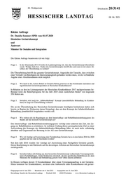 "content": "20. Wahlperiode Drucksache 20/3141 HESSISCHER LANDTAG 08. 06. 2021 Kleine Anfrage Dr. Daniela Sommer (SPD) vom 01.07.2020 Hessisches Geriatriekonzept und Antwort Minister für Soziales und Integration Die Kleine Anfrage beantworte ich wie folgt: Frage 1. In der Drucksache 20/1116 teilte die Landesregierung mit, dass das Geriatriekonzept überarbeitet werde. Welche Ziele bzw. Punkte des Geriatriekonzeptes betrifft dies und wann ist mit einem Ab- schluss der Überarbeitung zu rechnen? Die Überarbeitung betrifft das gesamte Geriatriekonzept. Angesichts der Tatsache, dass zwischen einer Vielzahl von Beteiligten ein Interessenausgleich gefunden werden muss, ist die verbindliche Angabe eines Abschlussdatums nicht möglich. Frage 2. Wie hoch ist der weitere Bedarf an Geriatrie-Betten gemessen an den bestehenden stationären und tagesklinischen Geriatriekapazitäten an Hessischen Krankenhäusern? In Relation zu den im Leistungsreport der Hessischen Krankenhäuser 2017 nachgewiesenen Ist- Bestand weist die Bedarfsprognose für das Jahr 2025 einen zusätzlichen Bedarf von insgesamt 356 Betten aus. Frage 3. Inwiefern wird auch das „fallabschließende“ Konzept (ausschließliche Behandlung im Kranken- haus) im Zuge der Überarbeitung evaluiert? Die an der Überarbeitung des Hessischen Geriatriekonzepts beteiligten Institutionen haben sich bereits zu Beginn der Diskussion darauf festgelegt, dass an dem Konzept der fallabschließenden Behandlung grundsätzlich festgehalten werden soll. Frage 4. Wie wirken sich die Regelungen aus dem Intensivpflege- und Rehabilitationsstärkungsgesetz des Bundes auf das hessische Geriatriekonzept aus? Das Intensivpflege- und Rehabilitationsstärkungsgesetz verfolgt unter anderem das Ziel, den Zu- gang zur Rehabilitation zu erleichtern. In welchem Umfang dieses gesetzgeberische Ziel zu einer Aufweichung des Konzepts der fallabschließenden Behandlung führt, ist noch nicht vollständig absehbar und Gegenstand der Beratung in der AG zum Geriatriekonzept. Frage 5. Wie viel Anträge auf Ausweisung einer Fachabteilung Geriatrie hat es in den Jahren 2016 bis 2020 gegeben und wie sind sie beschieden worden? Seit dem Jahr 2016 wurden vier Anträge auf Ausweisung eines Fachgebiets Geriatrie gestellt. Deren Bearbeitung ist mit Rücksicht auf die derzeitigen Arbeiten am Hessischen Geriatriekonzept zurückgestellt. Frage 6. Inwiefern haben sich bislang aus dem hessischen Geriatriekonzept wohnortnahe Versorgungsstruk- turen (Fachabteilungen, lokale Strukturen) entwickelt, die den spezifischen Bedürfnissen der alten Menschen bei Krankheit und Behinderung gerecht wird? (Bitte einzeln aufführen) In Hessen verfügen derzeit 33 Krankenhäuser über einen Versorgungsauftrag in der Geriatrie. Hinzu kommen vier Krankenhäuser, an denen eine Außenstelle eines Krankenhauses mit geriatr- Eingegangen am 8. Juni 2021 · Bearbeitet am 8. Juni 2021 · Ausgegeben am 10. Juni 2021 Herstellung: Kanzlei des Hessischen Landtags · Postfach 3240 · 65022 Wiesbaden · www.Hessischer-Landtag.de",