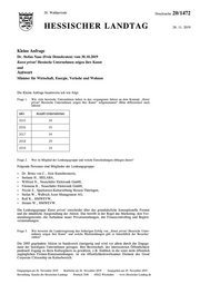 "content": "20. Wahlperiode Drucksache 20/1472 HESSISCHER LANDTAG 26. 11. 2019 Kleine Anfrage Dr. Stefan Naas (Freie Demokraten) vom 30.10.2019 Kunst privat! Hessische Unternehmen zeigen ihre Kunst und Antwort Minister für Wirtschaft, Energie, Verkehr und Wohnen Die Kleine Anfrage beantworte ich wie folgt: Frage 1. Wie viele hessische Unternehmen haben in den vergangenen Jahren an dem Konzept „Kunst privat! Hessische Unternehmen zeigen ihre Kunst“ teilgenommen? (Bitte differenziert nach Jahren) Jahr Anzahl Unternehmen 2015 34 2016 33 2017 34 2018 29 2019 24 Frage 2. Wer ist Mitglied der Lenkungsgruppe und welche Entscheidungen obliegen dieser? Folgende Personen sind Mitglieder der Lenkungsgruppe: Dr. Britta von C., freie Kunstberaterin, Stefanie H., HELABA, Wilfried N., Neuschäfer Elektronik GmbH, Filomena R., Neuschäfer Elektronik GmbH, Nicole S., Sparkassen-Kulturstiftung Hessen-Thüringen, Stefan W., Wallrich Asset Management AG, Rolf K., HMWEVW, Dennis W., HMWEVW. Die Lenkungsgruppe Kunst privat! entscheidet über das grundsätzliche konzeptionelle Format und die inhaltliche Ausgestaltung der Aktion. Das betrifft in der Regel das Marketing, den Ver- anstaltungstermin, die Aufnahme neuer Privatsammlungen, das Finanzcontrolling und Begleit- veranstaltungen. Frage 3. Wie bewertet die Landesregierung den bisherigen Erfolg von „Kunst privat! Hessische Unter- nehmen zeigen ihre Kunst“ und welche Rückmeldungen gibt es hinsichtlich der Besucher- zahlen? Die 2005 gegründete Aktion ist bundesweit einzigartig und wird vor allem durch das Engage- ment der beteiligten Unternehmen getragen. Ihre Bereitschaft, der interessierten Öffentlichkeit punktuell Zugang zu ihren Kulturgütern zu gewähren, z.B. Einblick in die sonst nicht öffentlich zugänglichen Firmen-Kunstsammlungen, ist ein öffentlichkeitswirksames Element des Good Corporate Citizenship im Kulturbereich. Eingegangen am 26. November 2019 · Bearbeitet am 26. November 2019 · Ausgegeben am 29. November 2019 Herstellung: Kanzlei des Hessischen Landtags · Postfach 3240 · 65022 Wiesbaden · www.Hessischer-Landtag.de",