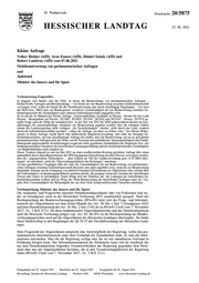 "content": "4 Hessischer Landtag · 20. Wahlperiode · Drucksache 20/5875 Frage 5. Beruht die Praxis der Nicht-Beantwortung von parlamentarischen Anfragen unter Berufung auf eine Unzuständigkeit für die Beantwortung der betreffenden Anfragen und des Verweises auf eine andere zuständige Gebietskörperschaft nach Kenntnis der hessischen Landesregierung auf einer festgeleg- ten Strategie zur a) Vorenthaltung/Nichtfreigabe von politisch brisanten Informationen gegenüber politisch unlieb- samen Oppositionsparteien und b) zum Ausschluss solcher Parteien vom Parlamentsgeschehen und der Wahrnehmung ihres de- mokratisch verbürgten Mitbestimmungsauftrags? Nein. Wiesbaden, 5. August 2021 In Vertretung: Dr. Stefan Heck",