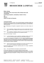 "content": "20. Wahlperiode Drucksache 20/367 HESSISCHER LANDTAG 05. 08. 2019 Kleine Anfrage Volker Richter (AfD), Gerhard Schenk (AfD) und Dimitri Schulz (AfD) vom 20.03.2019 Unterbringung unbegleiteter, minderjähriger Ausländer in Hessen und Antwort Minister für Soziales und Integration Vorbemerkung Fragesteller: Wie seit Jahren aus der Presse zu erfahren, reisen eine Vielzahl unbegleitete, minderjährige Ausländer nach Deutschland ein und beantragen hier Asyl. Aus medizinischen Untersuchungen zur Altersfeststellungen in Schweden und Dänemark wurde bei einem hohen Anteil der Ausländer nachgewiesen, dass sie falsche Alters- angaben gemacht haben. Diese Vorbemerkung der Fragesteller vorangestellt, beantworte ich die Kleine Anfrage wie folgt: Frage 1. Wie viele minderjährige, unbegleitete Ausländer (umA) wurden in den Jahren 2014, 2015, 2016, 2017 und 2018 in Hessen, aufgegliedert nach Landkreisen und kreisfreien Städten, aufgenom- men? Frage 2. Wie viele unbegleitete, minderjährige Ausländer davon waren in den Jahren 2014, 2015, 2016, 2017 und 2018 in Hessen weiblichen und wie viele männlichen Geschlechts? Hierzu wird auf die Anlage 1 verwiesen. Frage 3. In welchen Einrichtungen wurden die unbegleiteten, minderjährigen Ausländer in 2014, 2015, 2016, 2017, 2018 in den jeweiligen Landkreisen und kreisfreien Städten untergebracht? Es wurden in den Kommunen und Landkreisen i.d.R. die regulären Jugendhilfeeinrichtungen belegt, teilweise auch Wohnungen angemietet plus intensive sozialpädagogische Einzelfallhilfe. Insbesondere sehr junge umA wurden auch in Gastfamilien untergebracht und durch den Pflege- kinderdienst betreut. Wenn die Platzkapazitäten nicht ausreichten, erfolgten Hotelunterbringun- gen mit begleitender ambulanter Jugendhilfe. Frage 4. Wie hoch waren die Kosten für die Unterbringung der umA in Hessen, in den Jahren 2014, 2015, 2016, 2017 und 2018, aufgegliedert nach Landkreisen und kreisfreien Städten? Der Hessische Städtetag und der Hessische Landkreistag haben die in Anlage 2 aufgeführten Zahlen zur Verfügung gestellt. Frage 5. Wie wurde die Richtigkeit der Altersangabe der Antragsteller überprüft? Der Hessische Landkreistag sowie der Hessische Städtetag antworten wie folgt: Es wird in den Jugendämtern der gesetzlichen Vorgabe des § 42f SGB VIII bzw. § 21 SGB X entsprochen. Zum Teil wurde die Altersfeststellung/-einschätzung auch bereits in den hessischen Erstaufnahmeeinrichtungen durchgeführt. Im Übrigen wird auf die Antwort zu Frage 6 ver- wiesen. Eingegangen am 5. August 2019 · Bearbeitet am 5. August 2019 · Ausgegeben am 7. August 2019 Herstellung: Kanzlei des Hessischen Landtags · Postfach 3240 · 65022 Wiesbaden · www.Hessischer-Landtag.de",