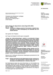 "outline": "- [Kleine Anfrage der Abgeordneten Juliane Nagel (DIE LINKE)](#page-1)\n- [Drs.-Nr.: 7/9386](#page-1)\n- [Thema: Immobilien im Besitz russischer Unternehmen, mögliche Auswirkungen der SWIFT-Auskopplung und Handhabe des Freistaates Sachsen](#page-1)\n- [Sehr geehrter Herr Präsident,](#page-1)\n- [Frage 1: Welche Kenntnisse hat die Staatsregierung über russische Unternehmen, die Liegenschaften in Sachen halten und/ oder anderweitig im Immobilienbereich in Sachsen tätig sind?](#page-1)\n- [Frage 2: Gibt es Unternehmen oder Einzelpersonen, welche über Liegenschaften in Sachsen verfügen und die direkt oder indirekt über Beteiligungen oder persönliche Beziehungen zu russischen Personen oder Unternehmen in Kontakt stehen, die durch die EU o...](#page-2)\n- [Frage 3: Inwiefern sind diese Unternehmen durch die Auskopplung russischer Banken aus dem SWIFT-System betroffen und wenn ja, welche Auswirkungen kann dies auf etwaige Mieter*innen haben?](#page-3)\n- [Frage 4: Sieht die Staatsregierung die Möglichkeit, entsprechende Vermögenswerte für die Dauer der kriegerischen Auseinandersetzung einzufrieren, gar gänzlich zu beschlagnahmen oder die Möglichkeit, die Verwertung russischen Kapitals in Immobilienproj...](#page-3)\n- [Frage 5: Gibt es zwischen dem Freistaat Sachsen und russischen Banken Geschäftsbeziehungen – und wenn ja: wie lassen sich diese nachvollziehen?](#page-4)\n- [Martin Dulig](#page-4)\n",