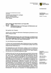 "content": "Sis SACHSEN STAATSMINISTERIUM Freistaat DES INNERN Rechtsaufsicht können die Staatsregierung bzw. die hierfür zuständigen Rechtsauf- sichtsbehörden vom Informationsrecht nach § 113 Sächsische Gemeindeordnung nur Gebrauch machen, wenn im Einzelfall Anhaltspunkte für eine bevorstehende oder bereits erfolgte Rechtsverletzung vorliegen. Dies ist im vorliegenden Fall nicht gegeben. Das begehrte pauschale Auskunftsverlan- gen der Aufsichtsbehörde ist vom Institut der Rechtsaufsicht nicht gedeckt. Frage 2: Wie viele Fahrzeuge mit Elektro-, Benzin- und Dieselmotor waren im Freistaat Sachsen in den Jahren 2017-2021 zugelassen? (bitte nach Jahren aufschlüsseln) Es wird auf die offiziellen Fahrzeugstatistiken des Kraftfahrt-Bundesamtes verwiesen. Diese sind im Internet unter https://www.kba.de/DE/Statistik/statistik_node.html, zuletzt aufgerufen am 7. Juni 2022, abrufbar. Darüber hinausgehende Informationen im Sinne der Fragestellung liegen der Staatsregierung nicht vor. Frage 3: Wie viele Fahrzeugbrände gab es in den Jahren 2017-2021 im Freistaat Sachsen? (bitte Aufschlüsseln nach Jahren und nach Art der Motorisierung) Die Feuerwehrstatistik erfasst nicht pauschal Fahrzeugbrände, sondern stellt bei den er- fassten Brandobjekten auf den benutzten Verkehrsweg ab. Insoweit werden Brände nach den Kategorien „Straßenfahrzeuge“, „Schienenfahrzeuge“ und „Luftahrzeuge“ erfasst. Die Motorisierung und — wenn vorhanden - die Art der Motorisierung von in Brand gera- tenen Fahrzeugen stellt indes kein statistisches Erhebungsmerkmal dar. Die erfasste Anzahl in den vorgenannten drei Kategorien ist in der Tabelle aufgeführt: Jahr 2017 2018 2019 2020 2021 Anzanl Brandenjekt „Straßenfahrzeug 627 873 851 870 774 Anzahl Brandobjekt 92 20 21 11 95 „Schienenfahrzeug Anzahl Brandobjekt „Luftfahrzeug“ 6 4 a 0 y Im Ubrigen wird auf die Antwort auf die Frage 1 verwiesen. Mit fyeundlich rüßen NL te in Schuster Seite 2 von 2",