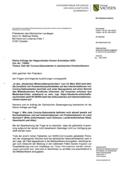 "content": "STAATSMlNlSTERlUM FÜR SOZlALES UND GESELLSCHAFTUCHEN ZUSAMMENHALT 5i SACHsEN Die Staatsministerin SÄCHSISCHES STAATSMINISTERIUM FÜR SOZIALES UND GESELLSCHAFTLICHEN ZUSAMMENHALT Durchwahl Albertstraße 10 1 01097 Dresden Telefon +49 351 564-55000 Telefax +49 351 564-55010 Präsidenten des Sächsischen Landtages Herrn Dr. Matthias Rößler Ihr Zeichen Bernhard-von-Lindenau-Platz 1 01067 Dresden Ihre Nachricht vom Aktenzeichen (bitte bei Antwort angeben) Z-1053/70/153-2022/59433 Dresden, A~ . April 2022 Kleine Anfrage der Abgeordneten Doreen Schwietzer (AfD) Drs.-Nr.: 7/9492 Thema: Zahl der Corona-Geboosterten in sächsischen Krankenhäusern Sehr geehrter Herr Präsident, den Fragen sind folgende Ausführungen vorangestellt: „In den „Deutschen Wirtschaftsnachrichten\" vom 16. März 2022 wird über die Zunahme von Krankenhausaufenthalten auf den Intensivstationen von Corona-Geboosterten berichtet und unter Bezugnahme auf einen Bericht des Mitteldeutschen Rundfunks informiert. Die Ursachen scheinen laut Medienberichten unbekannt zu sein. (vgl. https://deutsche-wirtschafts- nachrichten.de/518130/RKI-Zahl-der-Geboosterten-auf-lntensivstationen- nimmt-rasant-zu )\" Namens und im Auftrag der Sächsischen Staatsregierung beantworte ich die Kleine Anfrage wie folgt: Frage 1: Wie viele Corona-Geboosterte befinden sich aktuell jeweils auf Normalstationen und auf Intensivstationen von Krankenhäusern im Land Sachsen? (Bitte aufschlüsseln nach Zeitraum, Landkreis/kreisfreie Stadt, Geschlecht und Alter) Bei der Beantwortung der Frage ist zu beachten, dass die geforderte Auswer- tung aufgrund der derzeit nicht belastbaren Datenlage nicht zur Verfügung ge- stellt werden kann. Trotz der enorm hohen Fallzahlen von SARS-CoV-2-positiv getesteten Perso- nen der vergangenen Wochen sind die sächsischen Gesundheitsämter zwar in der Lage, die Fälle tagesaktuell in die Meldesoftware einzugeben, allerdings lie- gen zum Zeitpunkt der Meldung in den seltensten Fällen bereits Angaben zur Hospitalisierung und zum Impfstatus vor. Diese Informationen werden zeitver- Hausanschrift: zögert gemeldet bzw. sind erst im Nachhinein zu ermittelt und anschließend in Sächsisches Staatsministerium für Soziales und Gesellschaft- die Meldesoftware einzugeben. lichen Zusammenhalt Albertstraße 10 01097 Dresden www.sms.sachsen.de",