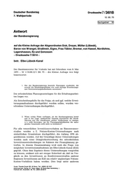 "content": "Deutscher Bundestag Drucksache 7/3618 7. Wahlperiode 12.05.75 Sachgebiet 95 Antwort der Bundesregierung auf die Kleine Anfrage der Abgeordneten Sick, Dreyer, Möller (Lübeck), Baron von Wrangel, Straßmeir, Eigen, Frau Tübler, Bremer, von Hassel, Nordlohne, Lagershausen, Ey und Genossen - Drucksache 7/3514 - betr. Elbe-Lübeck-Kanal Der Bundesminister für Verkehr hat mit Schreiben vom 9. Mai 1975 — W 1/10.00.12/1 BK 75 — die Kleine Anfrage wie folgt beantwortet: 1. Hat die Bundesregierung baureife Planungen erarbeitet, die sowohl die- Erhaltungsarbeiten wie auch etwaige Erweiterungs und Neutrassierungsmaßnahmen ausweisen? Die erforderlichen Planungsunterlagen für die Erhaltungsarbei- ten liegen vor. Als Entscheidungshilfe für die Fr a ge, ob und ggf. welche Erwei- terungsmaßnahmen durchgeführt werden sollen, wurden ver- schiedene Untersuchungen durchgeführt. 2. Wenn solche Pläne vorliegen, ist die Bundesregierung bereit und in der Lage, verbindliche Termine hinsichtlich der Durch- führung und des Abschlusses solcher Maßnahmen zu nennen, u. a. auch deswegen, um die Planungsmöglichkeiten der anlie- genden Gemeinden nicht mehr zu behindern? Für alle wesentlichen Investitionsvorhaben an Binnenwasser- straßen werden z. Z. Nutzen-Kosten-Untersuchungen nach einheitlichen Grundsätzen durchgeführt, die Anfang 1976 ab- geschlossen werden. Auf der Grundlage dieser Untersuchungen werden nach einer Dringlichkeitsreihung die erforderlichen Investitionsentscheidungen im Rahmen der Finanzplanung ge- troffen. In diesem Zusammenhang wird auch die Frage von möglichen Investitionsmaßnahmen am Elbe-Lübeck-Kanal (ELK) geprüft. Ohne dem Ergebnis dieser Untersuchungen vorgreifen zu können, zeichnet sich mit einiger Sicherheit ab, daß im Ver- gleich zu den Investitionen an Bundeswasserstraßen anderer Regionen Investitionen am ELK ein relativ ungünstiges Nutzen- Kosten-Verhältnis haben werden. Dies liegt unter anderem",