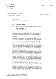 "content": "Deutscher Bundestag 2. Wahlperiode Drucksache 1448 1953 Der Bundesminister für Verkehr Bonn, den 10. Juni 1955 L4-4314-2172 B 55 An den Herrn Präsidenten des Deutschen Bundestages Betr. : Flughafen Wahn Bezug: Kleine Anfrage 177 der Abgeordneten Brück und Genossen - Drucksache 1419 - Die Kleine Anfrage der Abgeordneten Brück und Genossen über den Flughafen Köln-Bonn (Wahn) wird wie folgt beantwortet: Zu Nr. 1 Verhinderung der Sperrung des Flughafens Köln-Bonn (Wahn) für den zivilen Luftverkehr in der Zeit vom 20. bis 28. Juni 1955 Nachdem der Bundesregierung bekanntgeworden war, daß der Flug- hafen Köln-Bonn (Wahn) während des NATO-Manövers „Carte Blanche\" in der Zeit vom 20. bis 28. Juni 1955 für den gesamten zivilen Luftverkehr gesperrt werden soll, hat sie die erforderlichen diplomatischen Schritte unternommen, um eine Aufrechterhaltung der flugplanmäßigen Benutzung dieses Flughafens zu erwirken. Hierbei ergab sich, daß die Art der geplanten Manöver, die unter Beteiligung von 3000 Düsenflugzeugen aus 11 Staaten einer Erprobung der Luft- verteidigung Westeuropas dienen, sehr ernste Gefahren für die Sicherheit eines gleichzeitigen zivilen Luftverkehrs auf dem Flughafen Köln-Bonn (Wahn) mit sich bringen würde. In der Manöverzeit soll der Platz Tieffliegerangriffen ohne vorherige Warnung ausgesetzt werden; ferner sollen auf ihm häufig Düsenflugzeuge innerhalb kürzester Meldefristen landen und zur Abwehr angreifender Flug- zeuge ohne Zeitverlust starten. Bei einem viel kleineren Manöver im letzten Jahr, bei welchem der Flughafen Wahn für den zivilen Luftverkehr nicht geschlossen worden war, geriet ein Verkehrsflugzeug in unmittelbare Zusammenstoßgefahr mit einem Düsenjäger. Um eine hiernach zu erwartende Gefährdung der Sicherheit des zivilen Luftverkehrs auf dem Flughafen Wahn zu vermeiden, muß angesichts der Bedeutung der auch im Interesse der Bundesrepublik liegenden Manöver die Sperre des Flughafens vom 20. bis 28. Juni 1955 hingenommen werden. Der betroffene zivile Luftverkehr wird über den Verkehrsflughafen Düsseldorf umgeleitet werden.",