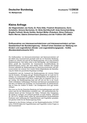 "content": "Deutscher Bundestag Drucksache 19/29030 19. Wahlperiode 27.04.2021 Kleine Anfrage der Abgeordneten Jan Korte, Dr. Petra Sitte, Friedrich Straetmanns, Doris Achelwilm, Simone Barrientos, Dr. Birke Bull-Bischoff, Anke Domscheit-Berg, Brigitte Freihold, Nicole Gohlke, Norbert Müller (Potsdam), Sören Pellmann, Katrin Werner, Sabine Zimmermann (Zwickau) und der Fraktion DIE LINKE. Einflussnahme von Interessenvertreterinnen und Interessenvertretern auf den Gesetzentwurf der Bundesregierung – Entwurf eines Gesetzes zur Stärkung von Kindern und Jugendlichen (Kinder- und Jugendstärkungsgesetz – KJSG) (Bundesratsdrucksache 5/21) Die Einflussnahme von Interessenvertreterinnen und Interessenvertretern auf den Inhalt eines Gesetzentwurfs geschieht nicht nur im Deutschen Bundestag. Sondern sie vollzieht sich auch bei der Bundesregierung, etwa in den einzelnen Bundesministerien. Dort haben schon in den Beteiligungs- und Anhörungsver- fahren gemäß den Vorschriften der Gemeinsamen Geschäftsordnung der Bundesministerien (GGO), aber auch darüber hinaus Verbände und sonstige Personen außerhalb der Bundesregierung als Interessenvertreterinnen und Inte- ressenvertreter (im weiteren Text: externe Dritte) Möglichkeiten der Beeinflus- sung des Inhalts der gesetzlichen Regelungsvorschläge. Grundsätzlich sind der Austausch der Bundesregierung mit externen Dritten und die Kenntnis, Abwägung und ggf. Berücksichtigung der im Laufe der Er- stellung von Gesetzentwürfen geäußerten Stellungnahmen und enthaltenen al- ternativen Formulierungen nicht falsch, sondern ganz im Gegenteil: Das ist so- gar wichtig. Die Bundesregierung kann und soll sich mit den in der Gesell- schaft vorhandenen Auffassungen, Positionen und Interessen auseinandersetzen und diese im Rahmen der Erstellung von Gesetzentwürfen als Initiativberech- tigte im Sinne des Artikels 76 Absatz 1 des Grundgesetzes (GG) ggf. berück- sichtigen. Dies muss nur für den Deutschen Bundestag als Gesetzgebungsorgan und nicht zuletzt auch für die Öffentlichkeit ersichtlich sein. „Die parlamentarische De- mokratie basiert auf dem Vertrauen des Volkes; Vertrauen ohne Transparenz, die erlaubt zu verfolgen, was politisch geschieht, ist nicht möglich.“ (BVerfGE 40, 296 (327)). Darüber hinaus sollten die unterschiedlichen gesellschaftlichen Positionen nach Auffassung der Fragestellerinnen und Fragesteller grundsätz- lich gleiches Gehör bei der Bundesregierung finden. Ergänzend zu den Kleinen Anfragen auf den Bundestagdrucksachen 19/25465 sowie 19/26356 haben die Fragestellerinnen und Fragesteller weitere Fragen zu dem Gesetzentwurf.",