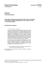 "content": "Deutscher Bundestag Drucksache 19/23538 19. Wahlperiode 21.10.2020 Antwort der Bundesregierung auf die Kleine Anfrage der Abgeordneten Oliver Luksic, Frank Sitta, Bernd Reuther, weiterer Abgeordneter und der Fraktion der FDP – Drucksache 19/22334 – Die Bahnhöfe im Saarland Vorbemerkung der Fragesteller Der Zustand der Bahnhöfe und Empfangsgebäude an Bahnstrecken ist für die Attraktivität des Schienenverkehrs von besonderer Bedeutung. Durch einen ansprechenden baulichen Zustand und eine entsprechende Sauberkeit können sie aus Sicht der Fragestellerinnen und Fragesteller in erheblichem Maße zur Steigerung der Passagierzahlen auf der Schiene beitragen. Leider sieht die Wirklichkeit an vielen Bahnhöfen oft anders aus. Teilweise verschmutzte Bahnhöfe, geringe WLAN-Verfügbarkeit und eingeschränkte Barrierefreiheit werden dem eigenen Anspruch der Deutschen Bahn AG (DB AG) als service- orientiertem Mobilitätsdienstleister nicht gerecht. Wenn der Schienenverkehr in Zukunft einen Beitrag zur Luftreinhaltung und zur Entlastung des Straßen- verkehrs leisten soll, sind hier erhebliche Anstrengungen erforderlich. Dazu gehören aus Sicht der Fragestellerinnen und Fragesteller unter anderem die zügige Beseitigung baulicher Mängel und Verschmutzungen, eine ange- messene Bereitstellung von Toiletten, der barrierefreie Zugang zur Infra- struktur, die einfache Erreichbarkeit, die Verfügbarkeit von WLAN, die Bereitstellung von Gewerbeflächen sowie die Gewährleistung der Sicherheit aller Reisenden durch Sicherheitskräfte oder Polizei. 1. Wie viele Bahnhöfe und Haltepunkte betreibt die Deutsche Bahn AG nach Kenntnis der Bundesregierung im Saarland? Nach Auskunft der Deutschen Bahn AG (DB AG) betreibt sie im Saarland 77 Verkehrsstationen. Die Antwort wurde namens der Bundesregierung mit Schreiben des Bundesministeriums für Verkehr und digitale Infra struktur vom 21. Oktober 2020 übermittelt. Die Drucksache enthält zusätzlich – in kleinerer Schrifttype – den Fragetext.",