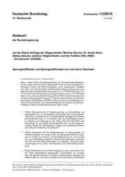 "content": "Deutscher Bundestag Drucksache 19/25610 19. Wahlperiode 23.12.2020 Antwort der Bundesregierung auf die Kleine Anfrage der Abgeordneten Martina Renner, Dr. André Hahn, Gökay Akbulut, weiterer Abgeordneter und der Fraktion DIE LINKE. – Drucksache 19/25094 – Sprengstoffbesitz und Sprengstoffeinsatz von und durch Neonazis Vorbemerkung der Fragesteller Immer wieder finden Ermittlungsbehörden bei Durchsuchungsmaßnahmen, die sich gegen Neonazis richten, Sprengstoffe, Teile zum Bau von Sprengvor- richtungen, Zünder und Zündvorrichtungen, sowie entsprechende Attrappen (vgl. https://www.hna.de/lokales/northeim/niedersachsen-goettingen-nazis-spr engstoff-bombe-anschlag-antifa-aktivist-polizei-zr-13794985.html, https://ww w.fr.de/rhein-main/hessen-grossrazzia-gegen-neonazi-szene-13354650.html, https://www.zeit.de/gesellschaft/zeitgeschehen/2020-10/rechtsterrorismus-poli zei-fund-waffen-sprengstoff-neonazi). Neben den Erkenntnissen des Kriminal- polizeilichen Meldedienstes (KPMD) werden in diesem Zusammenhang rele- vante Erkenntnisse auch vom Tatmittelmeldedienst für Spreng- und Brandvor- richtungen (TMD) beim Bundeskriminalamt (BKA) erfasst. 1. Welche Erkenntnisse hat die Bundesregierung zur Sicherstellung von Sprengstoffen bzw. zu Gegenständen, die geeignet sind, ein Sprengstoff- verbrechen zu begehen sowie zu entsprechenden Attrappen bei Neonazis und Reichsürgern oder in von Neonazis oder sog. Reichsbürgern genutz- ten Objekten und Fahrzeugen in den Jahren 2019 und 2020 (bitte nach Bundesland, Art und Menge des Sprengstoffes bzw. Art der Sprengvor- richtung, Datum der Durchsuchung, Ausgang des Ermittlungsverfahrens und Anlass der Maßnahme aufschlüsseln)? 2. Welche Erkenntnisse hat die Bundesregierung zur Sicherstellung von Zündvorrichtungen, die geeignet sind, bei Sprengstoffverbrechen einge- setzt zu werden, bei Neonazis und Reichsbürgern oder in von Neonazis oder sog. Reichsbürgern genutzten Objekten und Fahrzeugen in den Jah- ren 2019 und 2020 (bitte insbesondere Art, Herkunft, Anzahl der Zünd- vorrichtungen sowie Datum und Bundesland der Sicherstellung benen- nen)? 3. Welche Erkenntnisse hat die Bundesregierung zu den in den Jahren 2019 und 2020 aufgefundenen Sprengstoffen, Gegenständen, die geeignet sind, Sprengstoffverbrechen zu begehen, entsprechenden Attrappen und Zündern jeder Art, bei denen im Rahmen der polizeilichen Ermittlungen Die Antwort wurde namens der Bundesregierung mit Schreiben des Bundesministeriums des Innern, für Bau und Heimat vom 23. Dezember 2020 übermittelt. Die Drucksache enthält zusätzlich – in kleinerer Schrifttype – den Fragetext.",