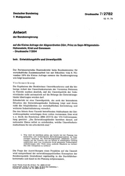 "content": "Deutscher Bundestag Drucksache 7/2782 7. Wahlperiode 12.11.74 Antwort der Bundesregierung auf die Kleine Anfrage der Abgeordneten Dürr, Prinz zu Sayn-Wittgenstein Hohenstein, Kirst und Genossen - Drucksache 7/2554 betr. Entwicklungshilfe und Umweltpolitik Der Parlamentarische Staatssekretär beim Bundesminister für wirtschaftliche Zusammenarbeit hat mit Schreiben vom 8. No- vember 1974 die Kleine Anfrage namens der Bundesregierung wie folgt beantwortet: Vorbemerkung Die Ergebnisse der Stockholmer Umweltkonferenz und die bis- herige Arbeit des Umweltsekretariats der Vereinten Nationen in Nairobi machen deutlich, daß die Umweltpolitik der Indu- strieländer nicht automatisch auf die Belange der Entwicklungs- länder übertragen werden darf. Erforderlich ist eine Umweltpolitik, die auch der besonderen Situation der Entwicklungsländer Rechnung trägt und ihnen nicht die Möglichkeiten zur wirtschaftlichen Entwicklung und weiteren Industrialisierung verwehrt. Die den Schutz ihrer Umwelt betreffenden Maßnahmen der Ent- wicklungsländer unterliegen ihrer vollen Autonomie. Dies wird u. a. durch die Resolution 2894 (XXVI) der VN-Vollversamm- lung. gestützt: „Die Entwicklungsländer bestehen darauf, auf nationaler Ebene selbst zu entscheiden, welche Umweltschutz- maßnahmen für sie erforderlich sind.\" 1. Was wird im einzelnen getan, um bereits bei der Planung von bilateralen und multilateralen Entwicklungsprojekten im lang- fristigen Interesse der Entwicklungsländer - schädliche Auswir- kungen auf die Umwelt, wie sie bereits in erheblichem Umfang aufgetreten sind, von vornherein durch geeignete Technologien, Abänderungen oder Wahl eines anderen Standorts zu vermei- den oder wenigstens zu mildern? Die Frage der Auswirkungen eines Projektes auf die Umwelt wird entsprechend der entwicklungspolitischen Konzeption der Bundesrepublik Deutschland regelmäßig in die Durchführbar- keitsstudie und damit in die Planung aufgenommen.",