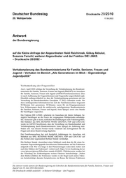 "title": "auf die Kleine Anfrage\n- Drucksache 20/2092 -\nVorhabenplanung des Bundesministeriums für Familie, Senioren, Frauen und\nJugend - Vorhaben im Bereich \"Alle Generationen im Blick - Eigenständige\nJugendpolitik\"",